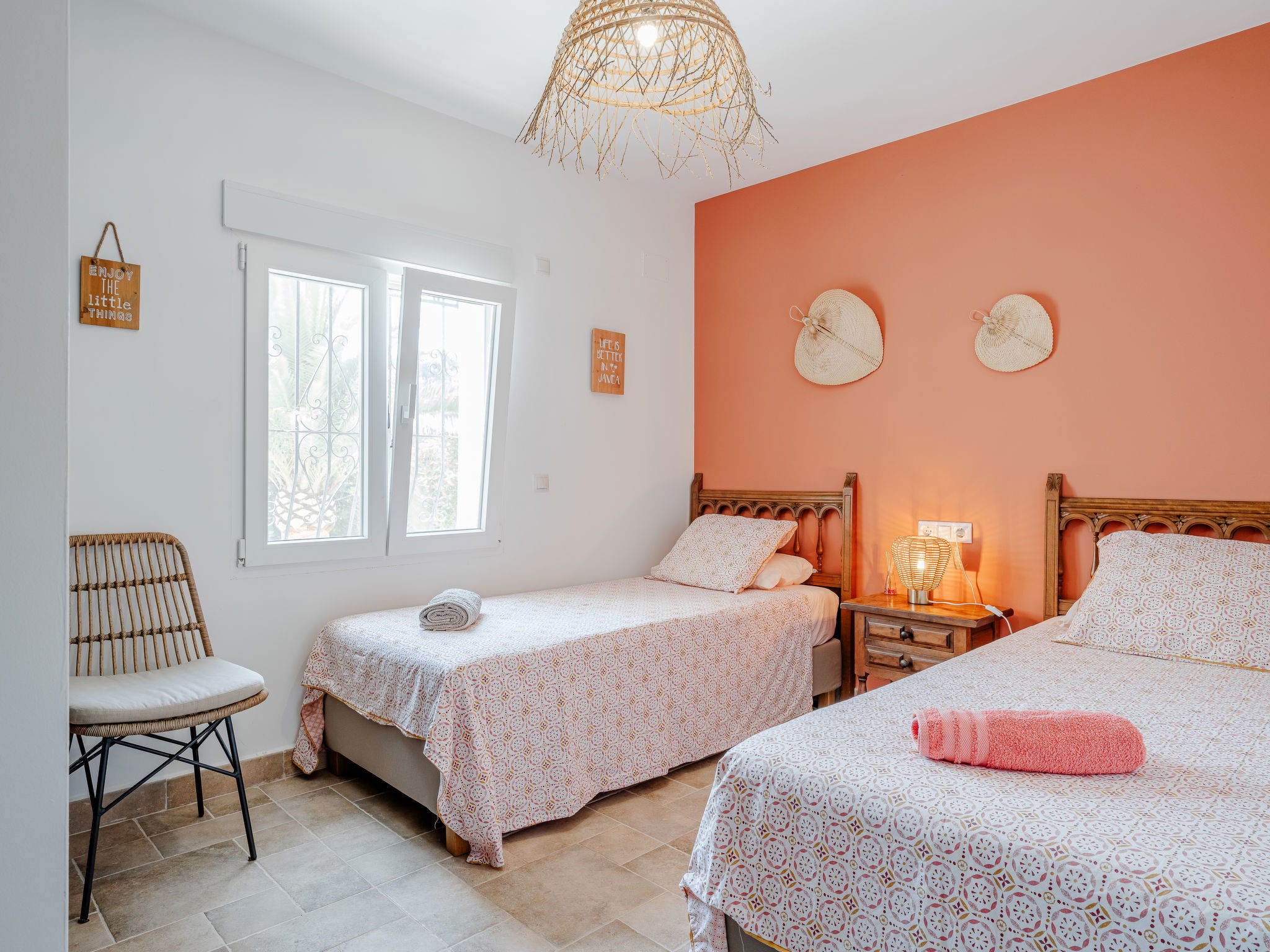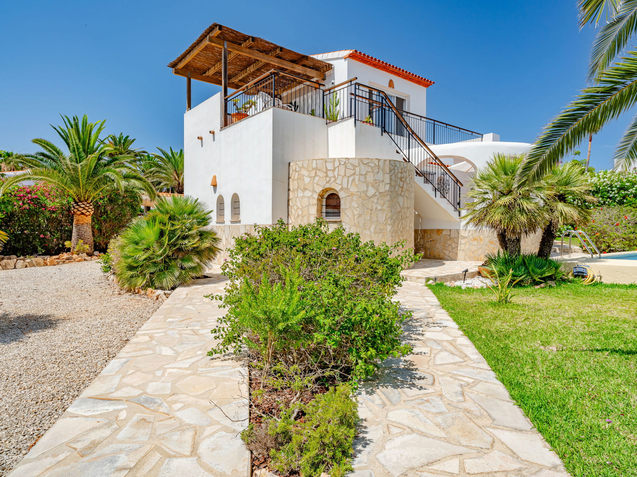 Belle, grande maison "Villa Los Amigos", de 2 étages. Dans le quartier de Balcón al Mar - Javea, situation tranquille, ensoleillée, à 150 m de la mer, à 3.4 km de la plage. A usage privé: grand, beau jardin entretenu, piscine rectangulaire (10 x 5 m, profondeur 80 - 180 cm, disponibilité saisonnière: 01.Jan. - 31.Dec.). Douche extérieure, pergola, meubles de jardin, place de parking, garage individuel. Supermarché, restaurant 700 m, boulangerie 900 m, café 750 m, arrêt de bus 5 km, plage de sable "El Arenal" 6.4 km, plage de galets "Cala Portitxol" 3.4 km. Port plaisance 7 km, terrain de golf (18 trous) 9.7 km, ecole de surf 7 km, tennis 750 m. Le propriétaire n'accepte pas les groupes de jeunes. À prendre en compte : à 700 mètres, il y a un terrain de padel.