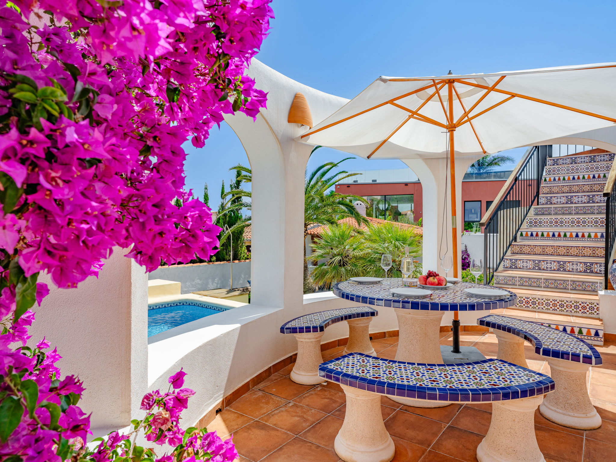 "Villa Los Amigos", maison 4 pièces 250 m2 sur 2 niveaux. Spacieux et clair, aménagement très agréable et de style: séjour/salle à manger avec TV (satellite), air-conditionné et chauffage à air chaud. Sortie sur le jardinet, sur la piscine. 1 chambre avec 1 lit double (2 x 80 cm, longueur 200 cm), douche/WC, air-conditionné et chauffage à air chaud. 1 chambre avec 2 lits (90 cm, longueur 200 cm), air-conditionné et chauffage à air chaud. Cuisine (four, lave-vaisselle, 3 plaques vitrocéramiques, grille-pain, bouilloire électrique, micro-ondes, congélateur, cafetière électrique, Capsules pour machine à café (Nespresso) (NON INCLUSES)). Douche/WC. À l'étage supérieur: 1 chambre avec Dressing avec 1 lit double (2 x 80 cm, longueur 200 cm), douche/WC, air-conditionné et chauffage à air chaud. Sortie sur la terrasse. Grande terrasse 140 m2, grande terrasse 40 m2, jardin. Meubles de terrasse, chaises longues (6), loggia, place pour s'asseoir. Superbe vue sur la mer et la vallée. A disposition: lave-linge, fer à repasser, sèche-cheveux. Internet (Connexion WIFI, gratuit). Place de parking, garage. VT-490489-A // Reg. Nr.: ESFCTU00000307100026960200000000000000000VT-490489-A1