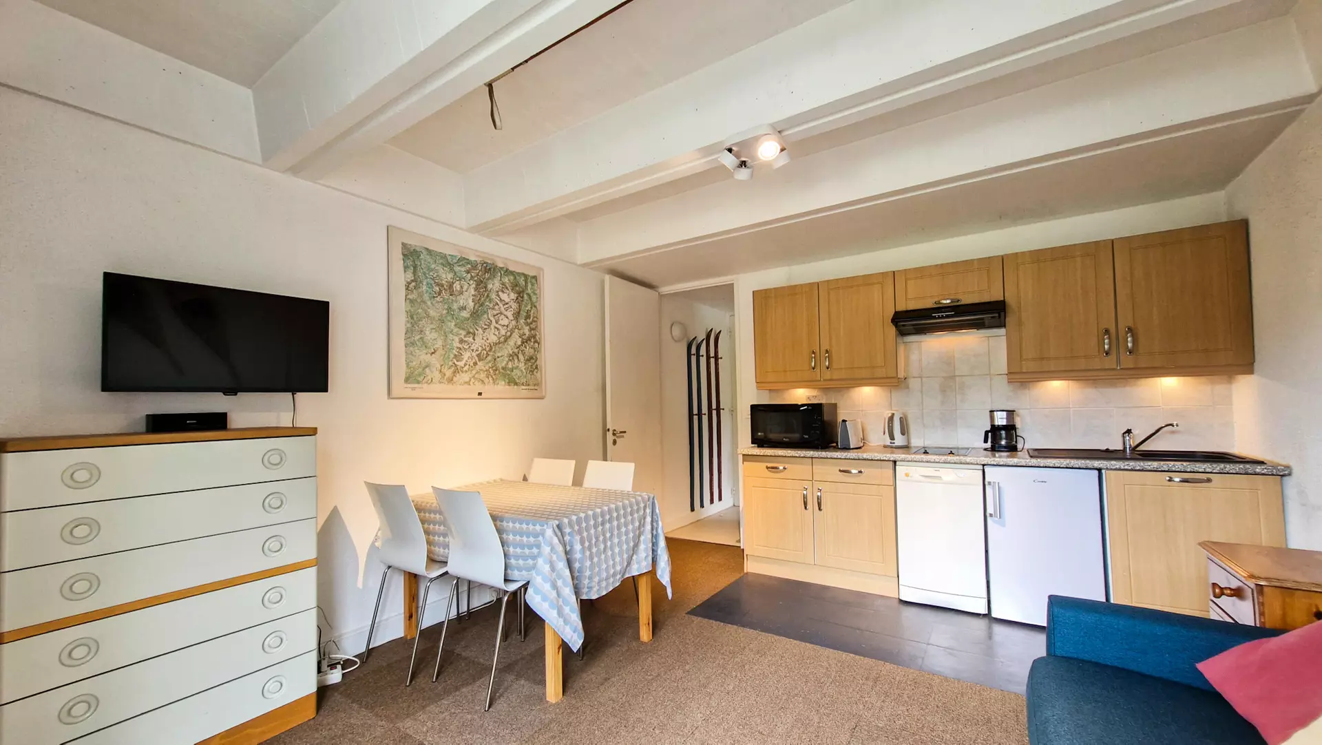 - Cuisine dans le séjour avec lave-vaisselle et micro-onde mixte
