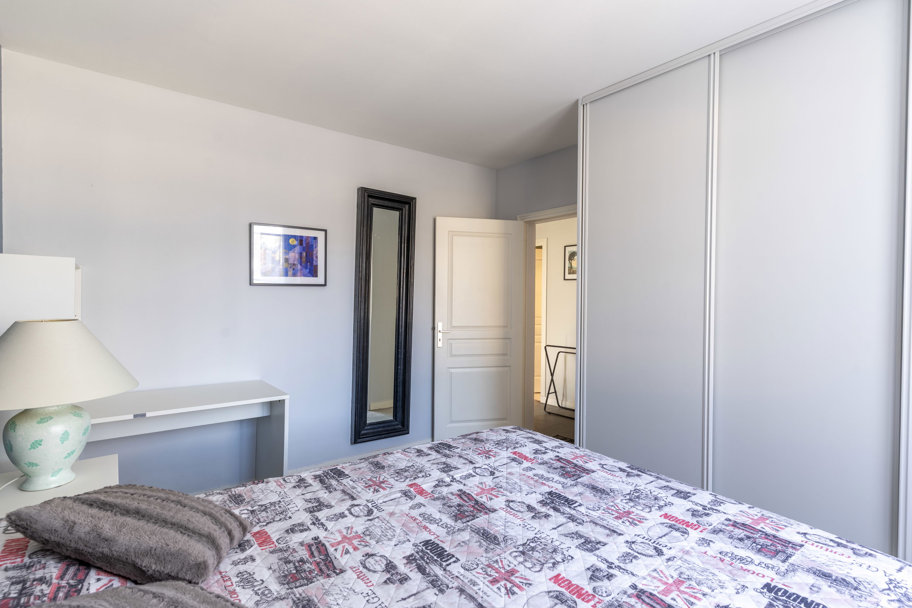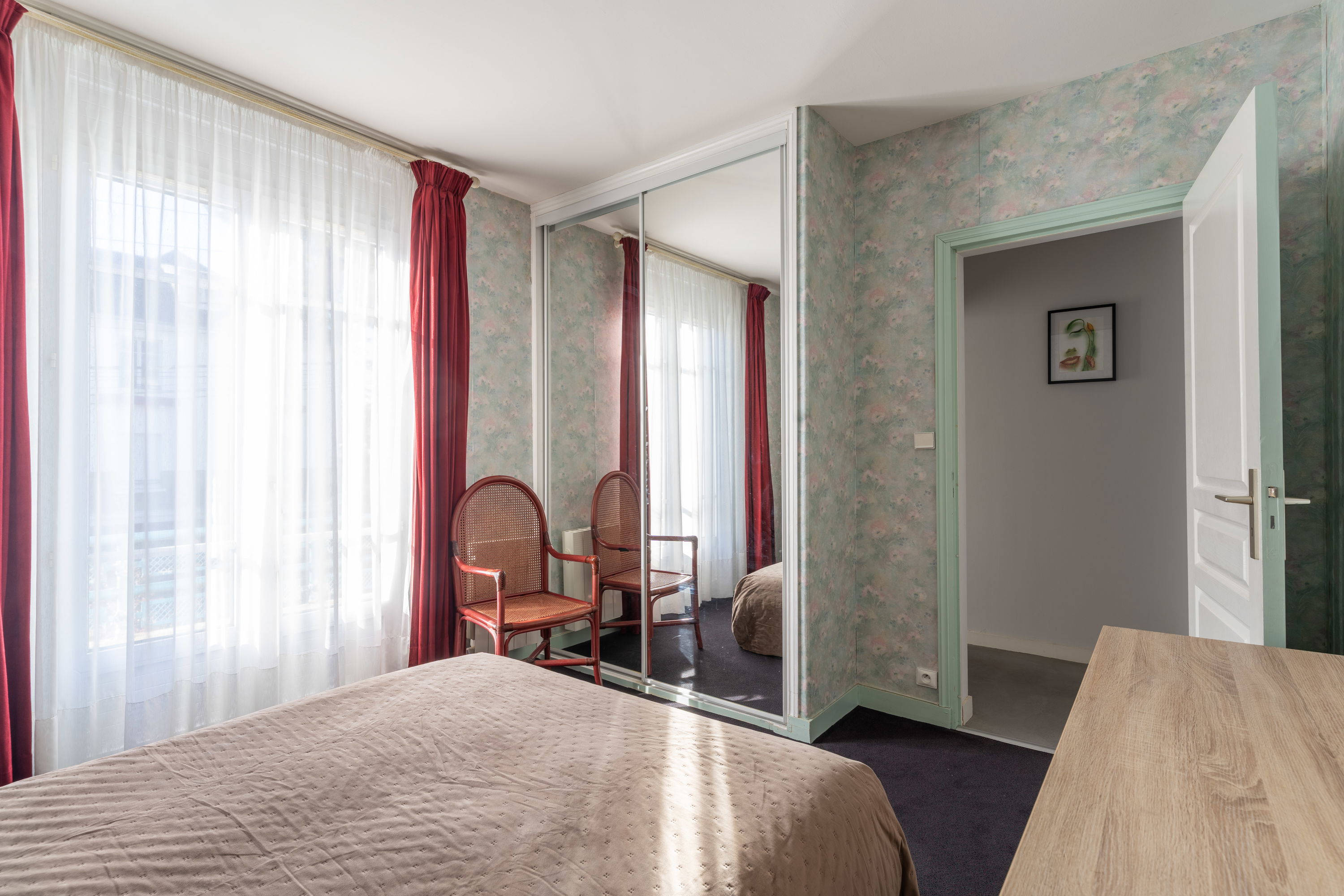 Chambre 3 : lit 160x200, bureau, balcon côté rue