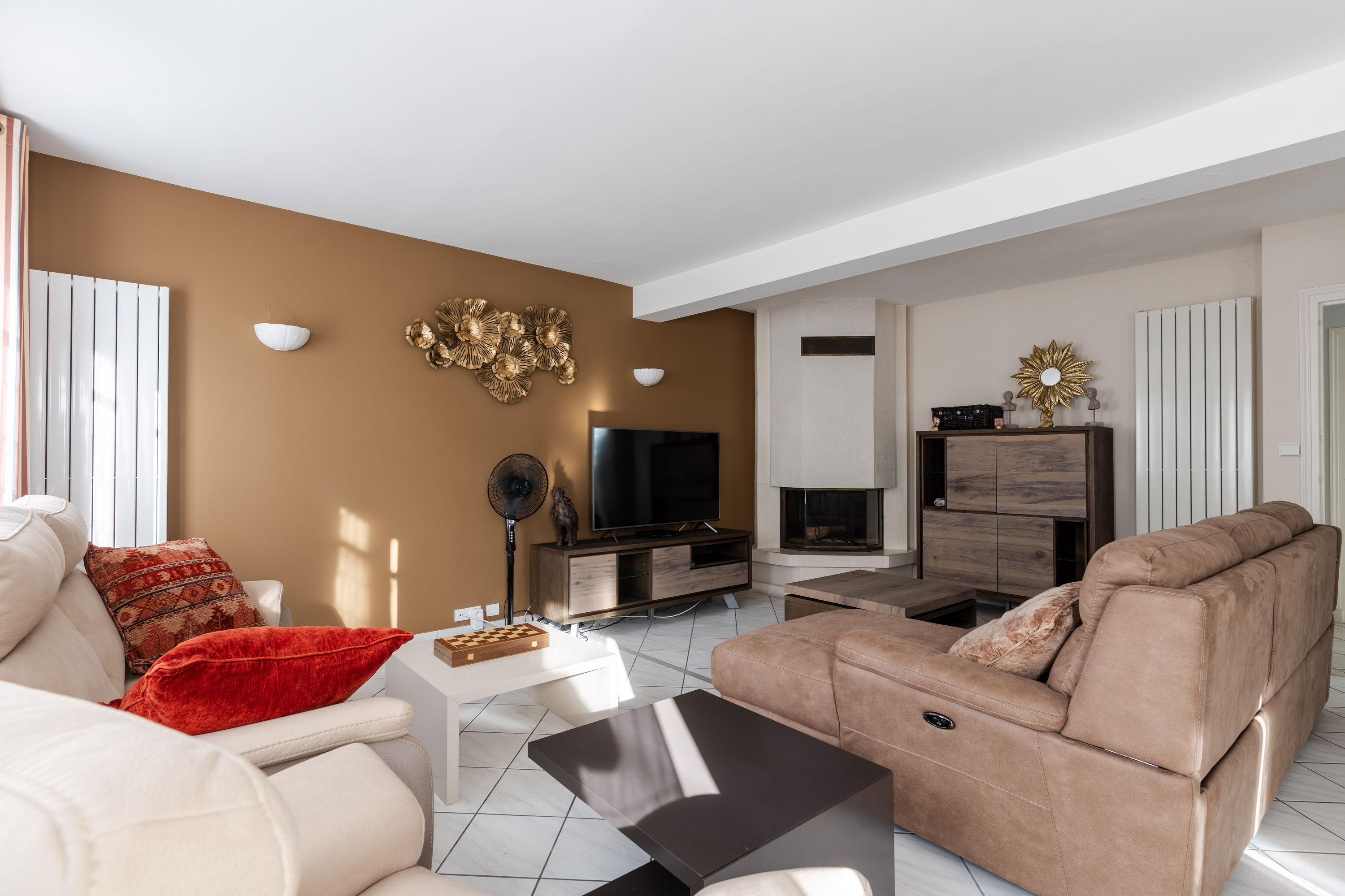 Grand séjour lumineux avec espace TV