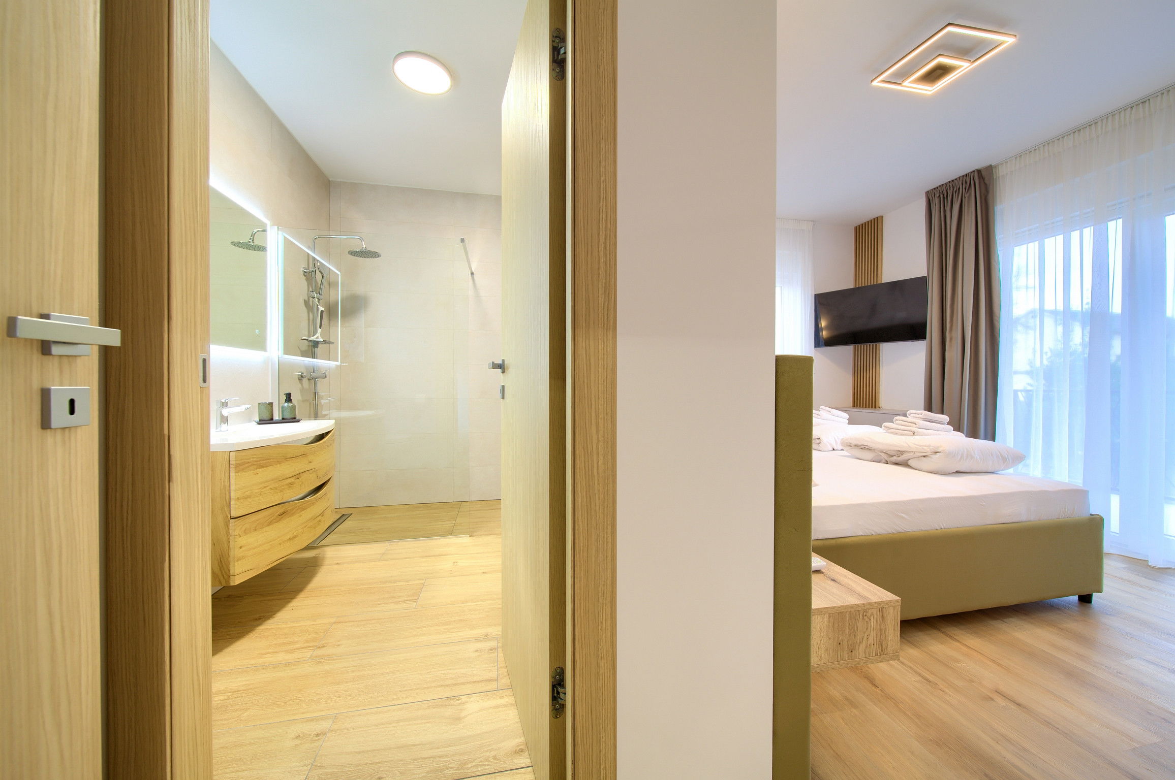 Logement de 156 m² accueillant et moderne, avec vue sur le jardin et la piscine.