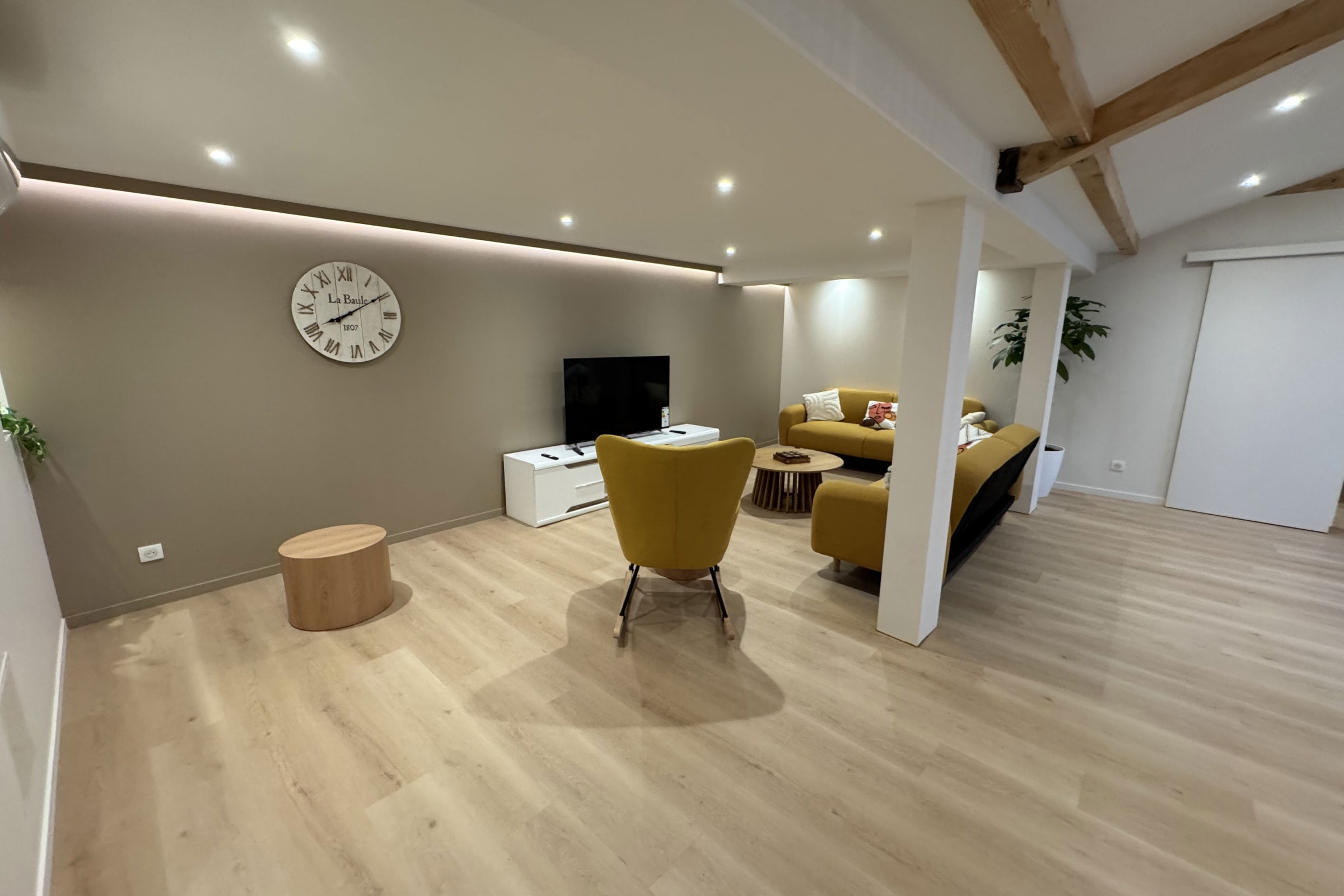 - un vaste espace de vie avec salon et salle à manger,