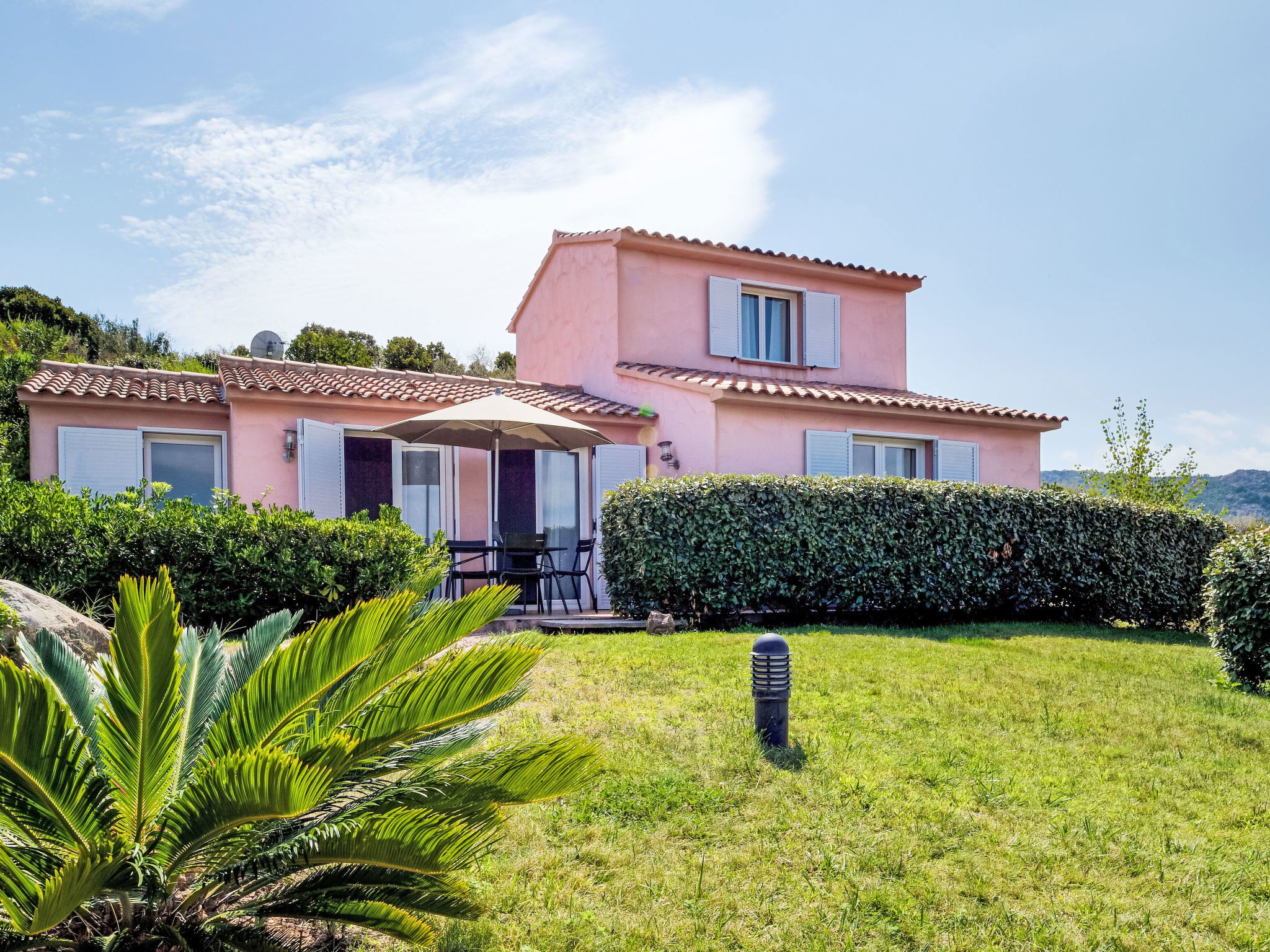 Petite résidence "Marina Serena". 5 maisons dans la résidence. Dans le quartier de Pavellone, en bordure de la localité, à 10 km du centre de Porto-Vecchio, situation tranquille, surélevée, à 700 m de la mer, à 700 m de la plage, route à traverser. En commun: piscine rectangulaire (15 x 6 m, profondeur 150 cm, disponibilité saisonnière: 01.Mai. - 31.Oct.). Douche extérieure, place de parking près de la maison. Centre commercial 12 km, restaurant 4 km, arrêt de bus 8 km, plage de sable "Pavellone" 700 m. Port plaisance 9 km, terrain de golf (9 trous) 13 km. Attractions à proximité: Porto-Vecchio 10 km, Plage de Palombaggia 8 km, Plage de Santa Giulia 11 km, Bonifacio 30 km. Les lacs connus sont facilement accessibles: Lac de l'Ospédale 30 km. Région de randonnées: Aiguilles de Bavella 55 km. Veuillez noter: voiture recommandée.