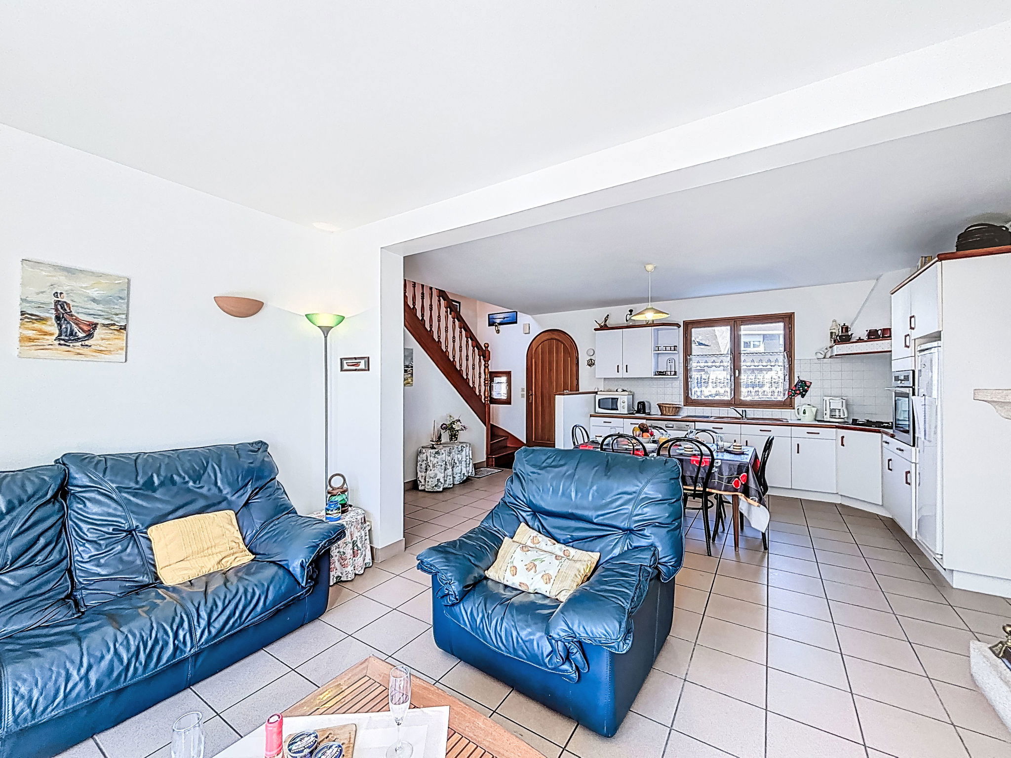 "Maison Goh Lannec", maison 4 pièces 114 m2. Aménagement confortable: séjour/salle à manger avec cheminée (uniquement à titre de décoration), TV (écran plat). Sortie sur la terrasse. 1 chambre avec 1 grand-lit (1 x 140 cm, longueur 190 cm). Sortie sur le jardin. Cuisine (4 plaques de cuisson, lave-vaisselle, grille-pain, bouilloire électrique, micro-ondes, cafetière électrique). Douche, bidet, WC séparé. À l'étage supérieur: 1 chambre avec 1 grand-lit (1 x 140 cm, longueur 190 cm). 1 chambre avec 1 grand-lit (1 x 140 cm, longueur 190 cm). Bain/WC. Terrasse, jardin. Meubles de terrasse, barbecue. A disposition: lave-linge. Place de parking. Veuillez noter: logement non-fumeur. Détecteur de fumée. Annonce d'un particulier (art 155, IV du CGI). 56055000011Y9