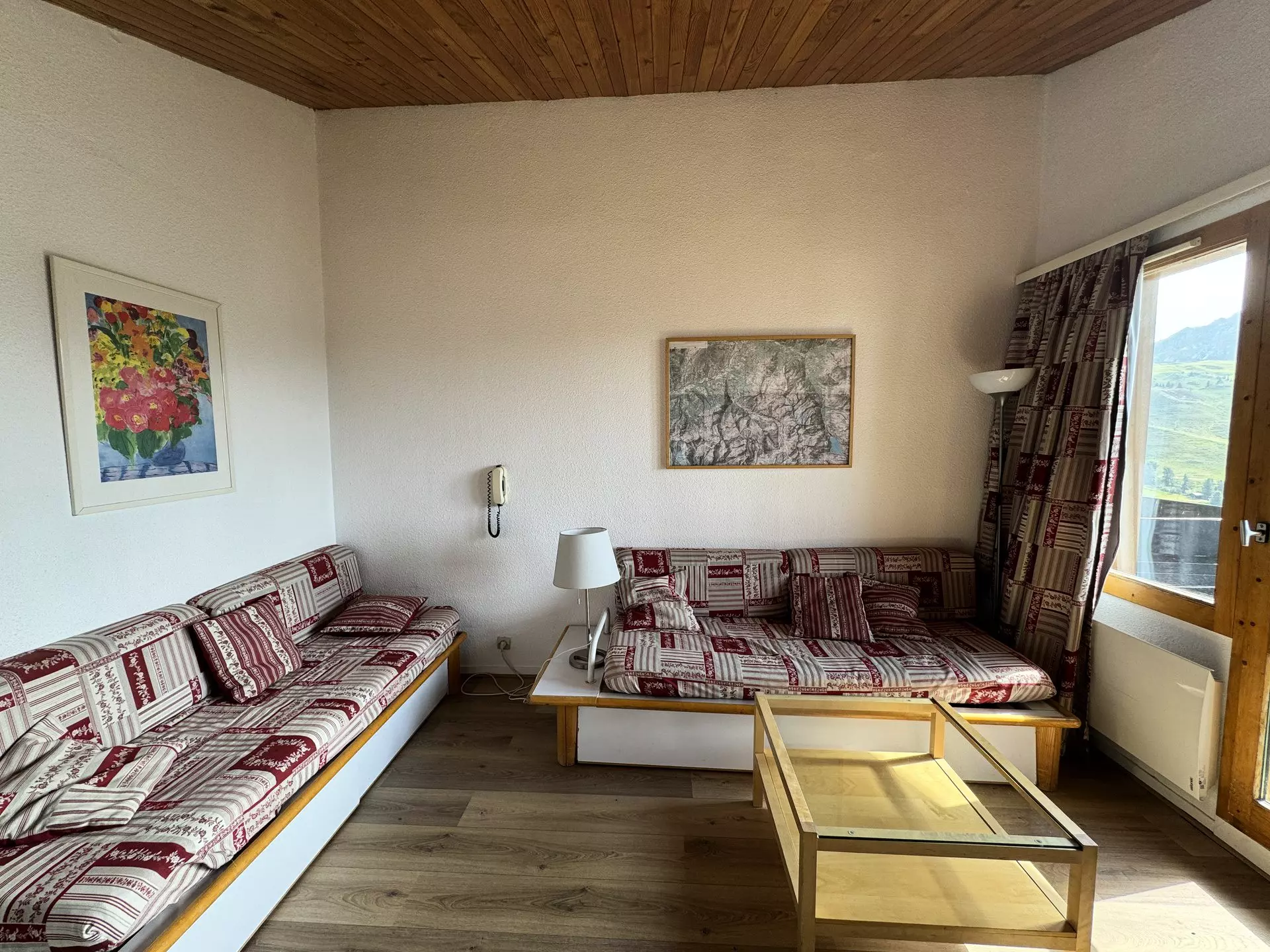 Il est situé au sud ouest et au 5ème étage avec un balcon et vue sur les pistes.