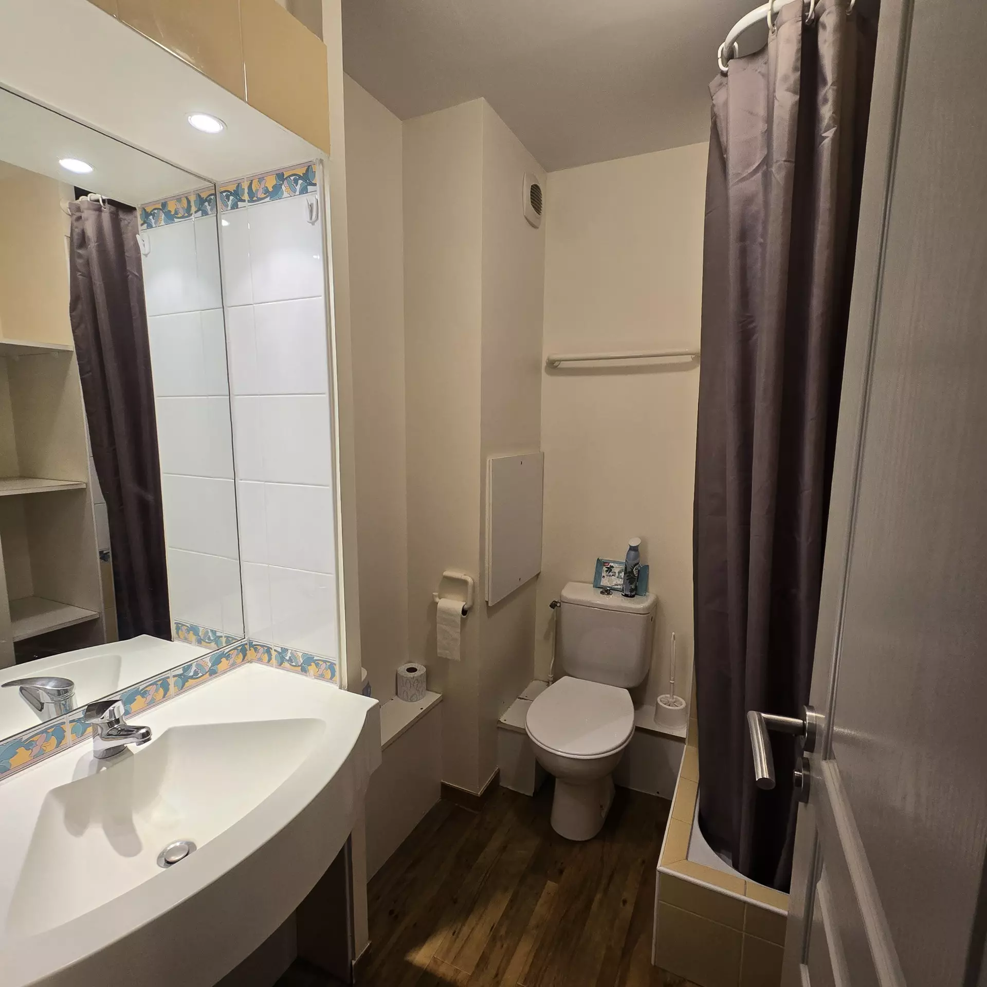La salle d’eau se compose d’un lavabo, d’une douche et W.C.
