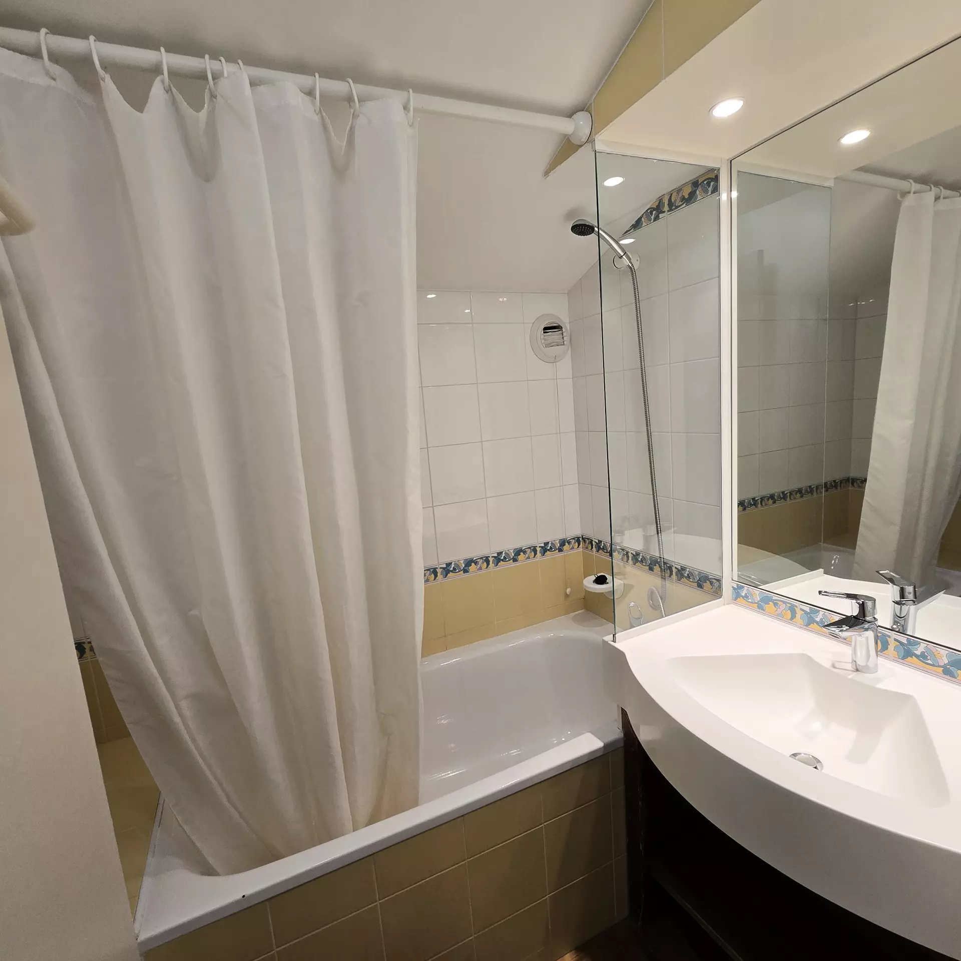 La salle de bain se compose, d’un lavabo et d’une baignoire.