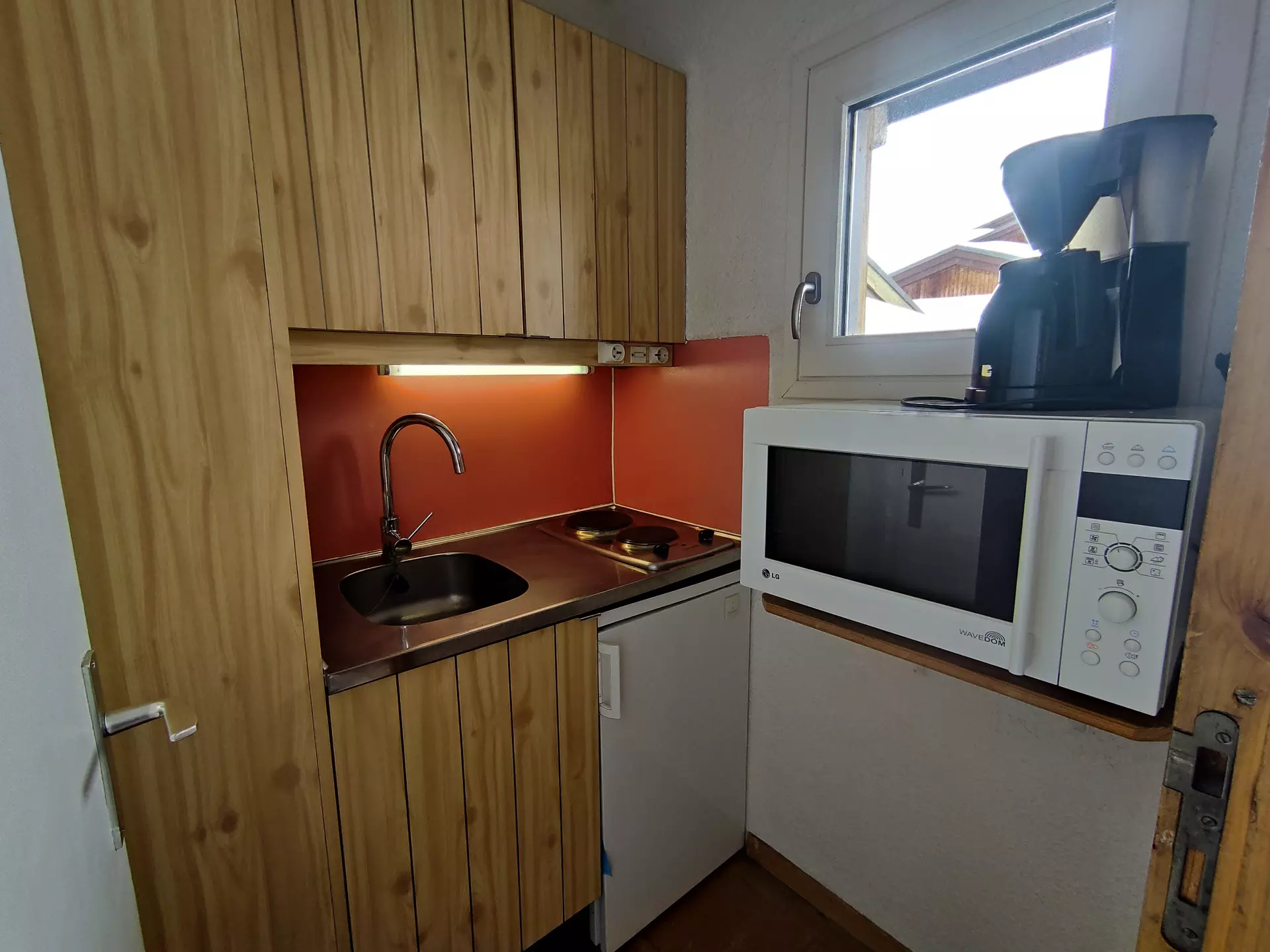 La kitchenette est équipée de plaques électriques, d'un réfrigirateur et d'un micro-ondes.