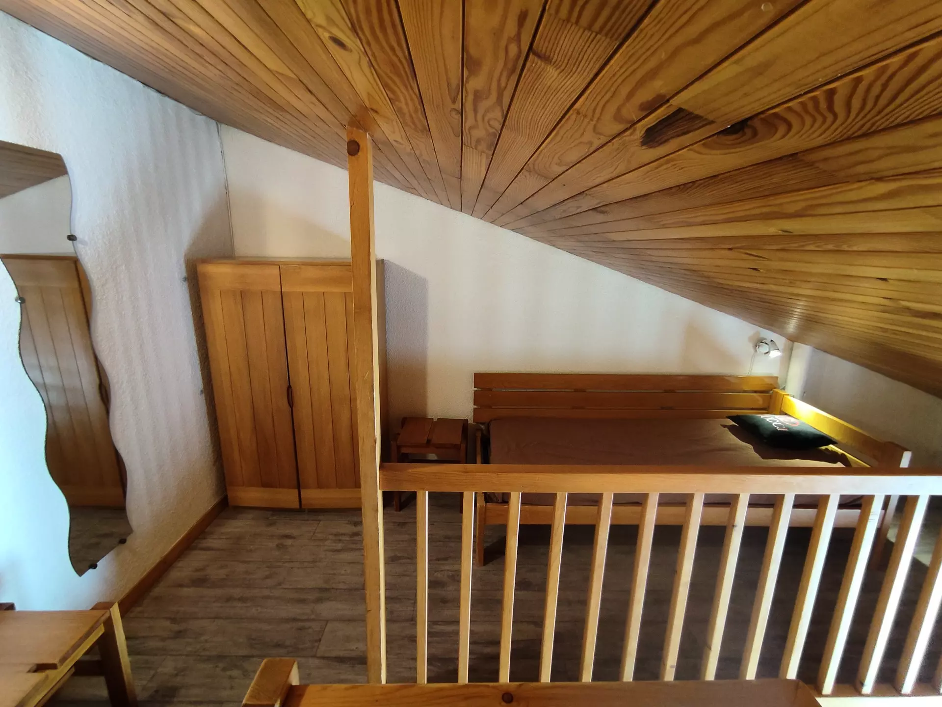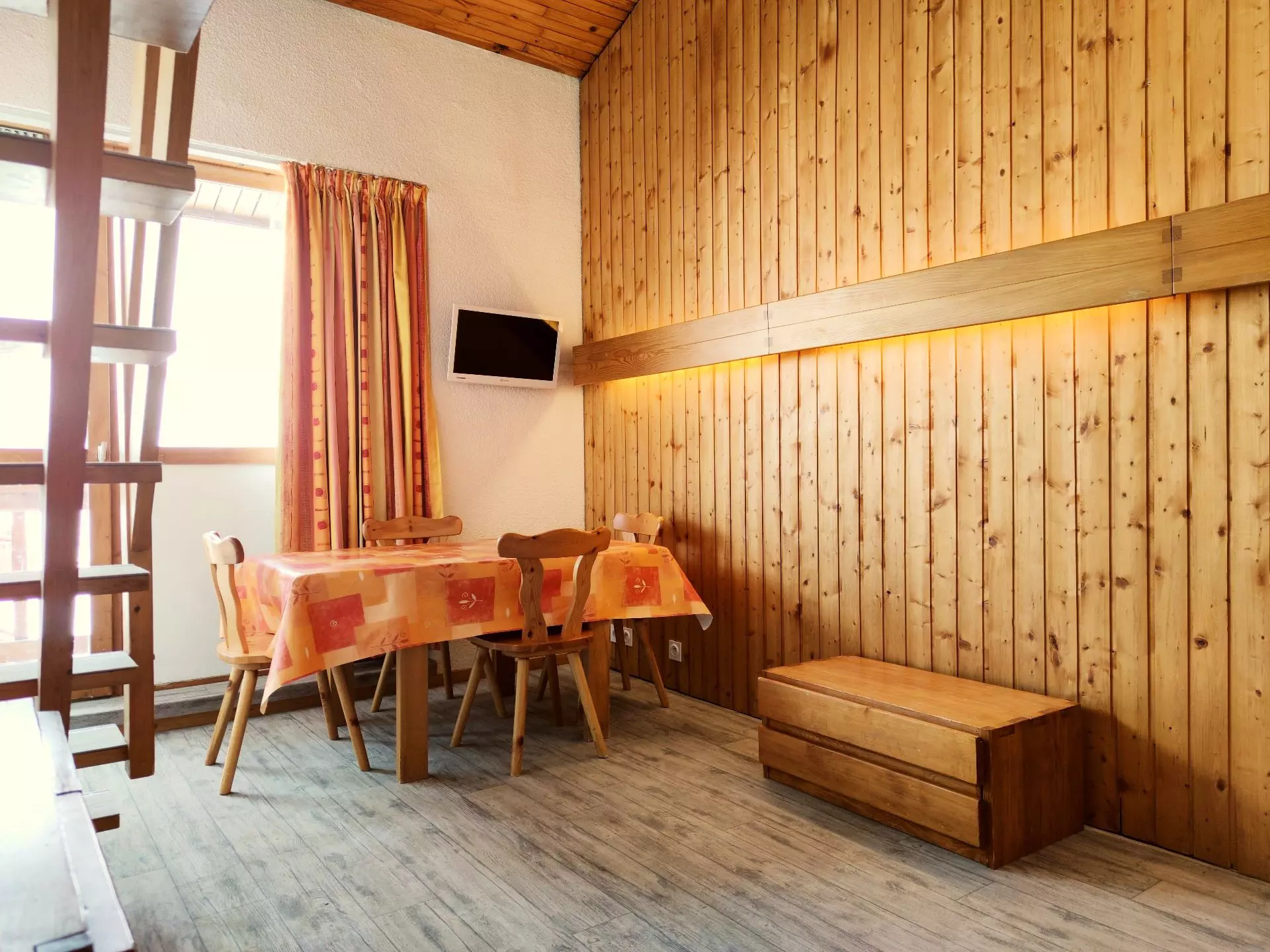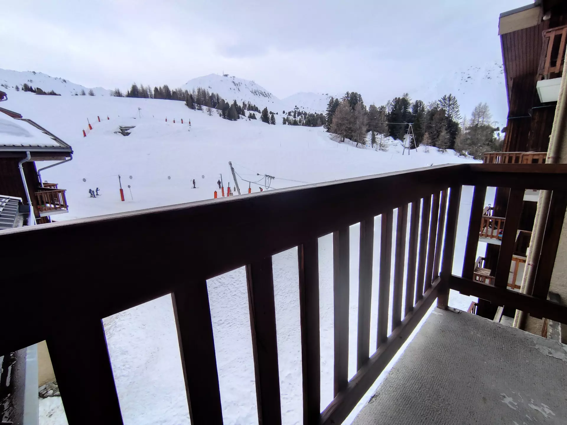 Studio avec mezzanine situé au pied des pistes et à proximité des commerces de Plagne Village, exposition Sud et vue sur les pistes.
