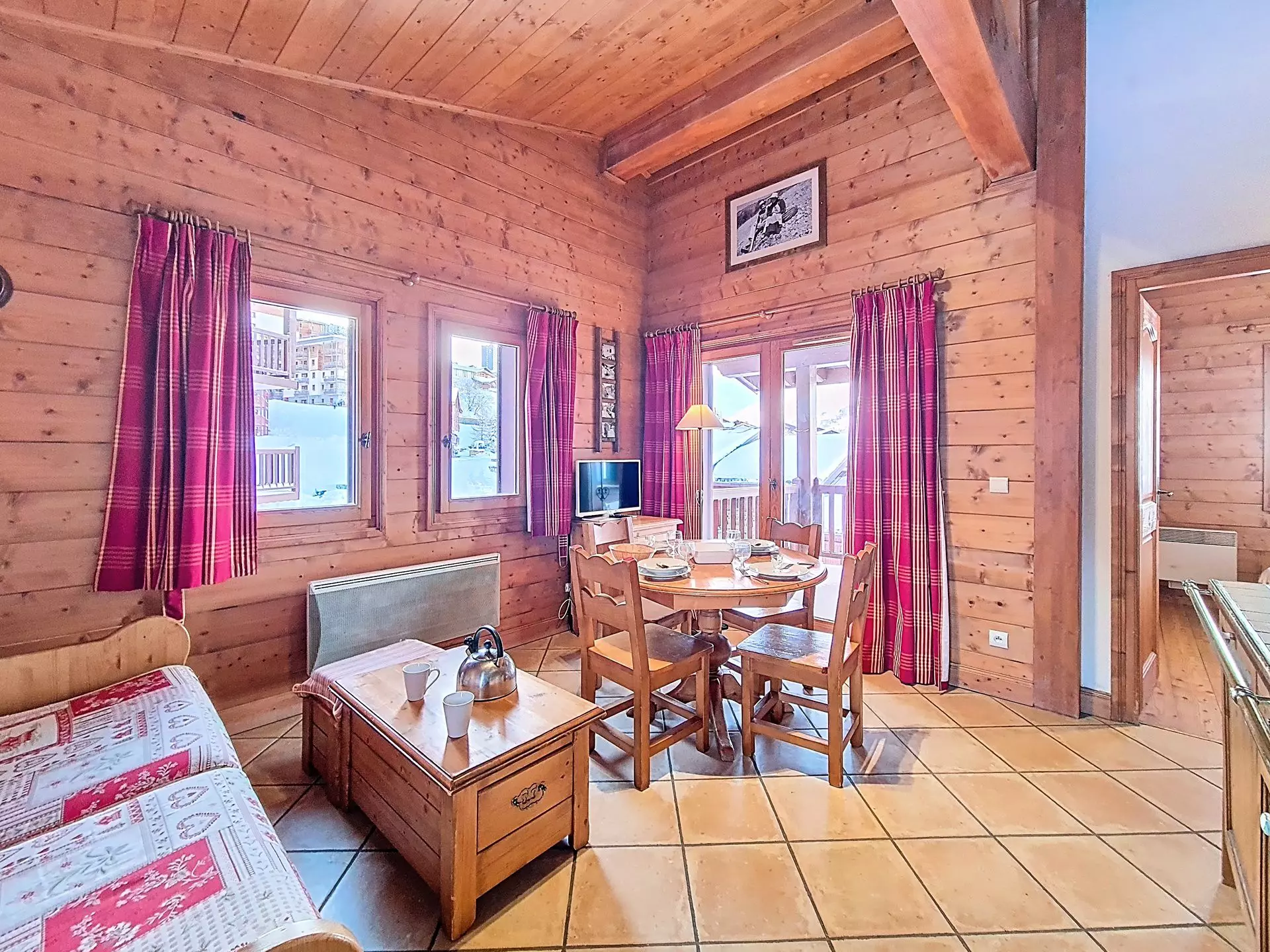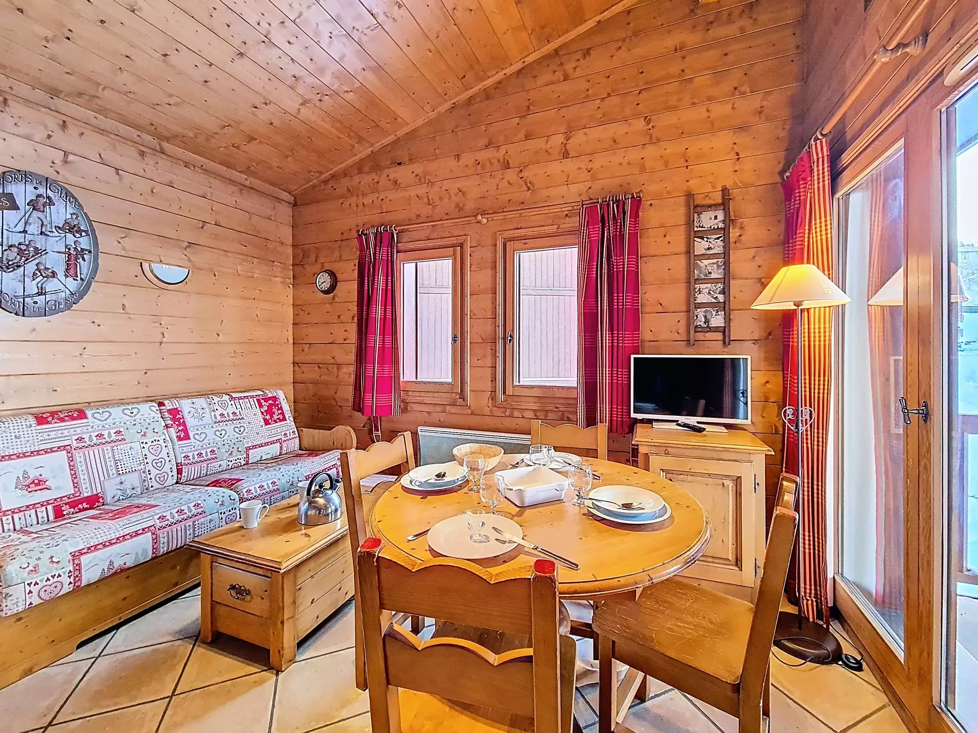 Séjour : 1 canapé lit 2 personnes. Equipé d'une télévision.