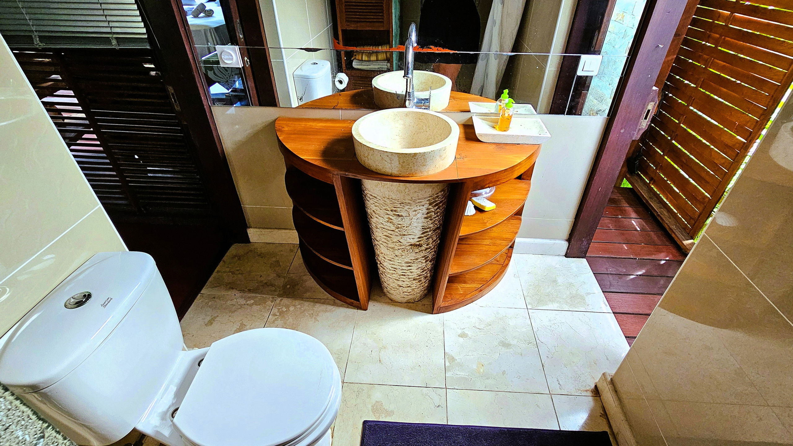 Vous y trouverez : un barbecue, une douche extérieure pour vous rincer après la mer, ainsi que des arbres fruitiers et de nombreuses plantes et fleurs locales qui parfument l’air et renforcent le sentiment d’évasion.
