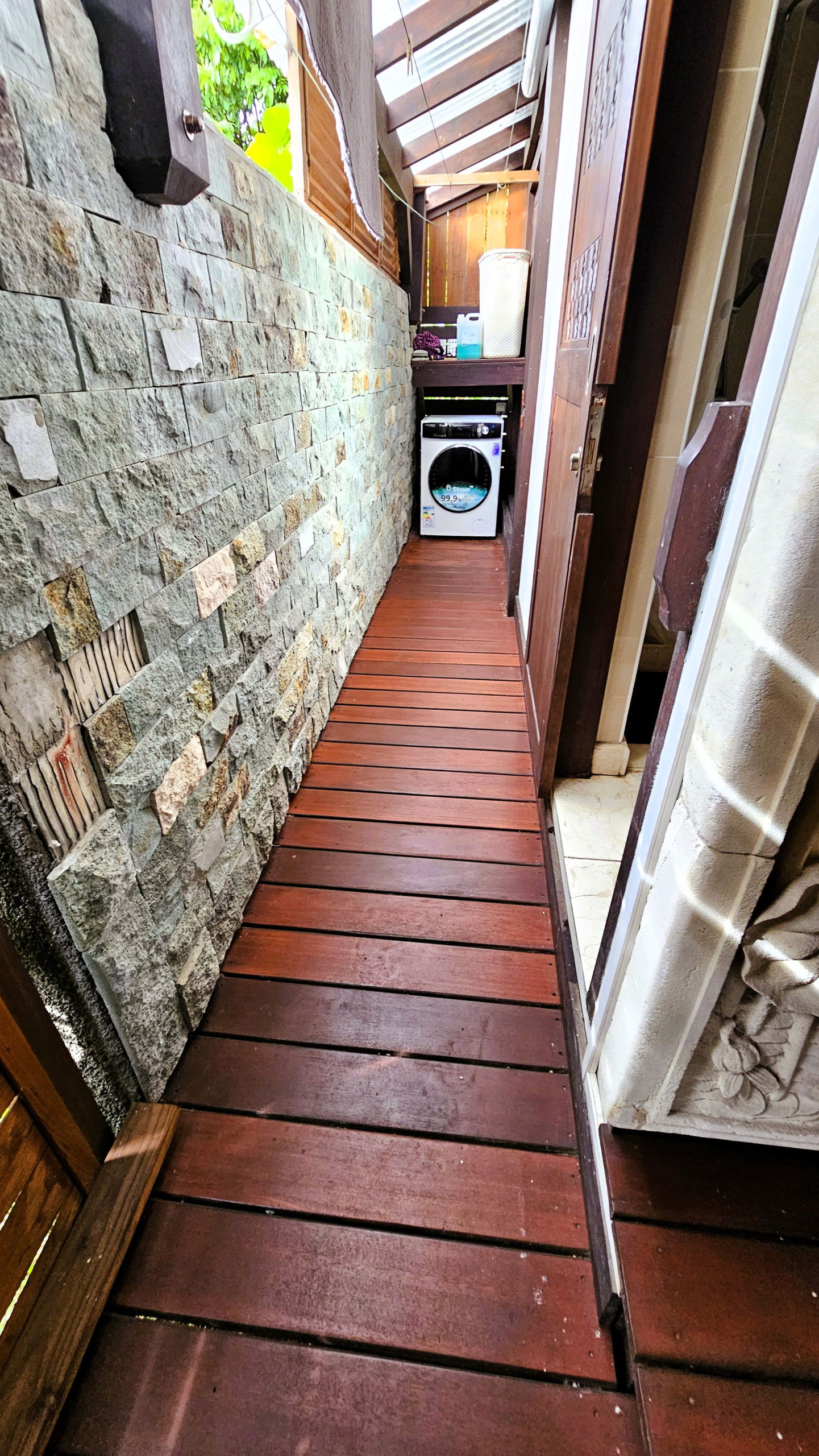Bois chaleureux, décoration soignée, mobilier inspiré de l’art de vivre insulaire… Chaque détail a été pensé pour offrir une atmosphère accueillante et dépaysante. Ici, vous ne séjournez pas simplement dans une location, vous vivez une véritable expérience.