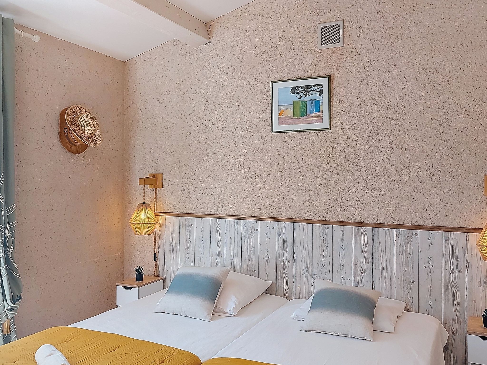 Belle maison à 2 apts. Location composée d'un bâtiment principal et d'une annexe, en bordure de la localité, à 1.5 km du centre de Le Château d'Oléron, dans un quartier résidentiel, zone avec peu de trafic, à 1.8 km de la forêt, à 1.8 km de la mer, à 1.8 km de la plage. A usage privé: grand jardin entretenu 600 m2 (clôturé). Pergola, terrasse, meubles de jardin, barbecue, place de parking (pour 2 voitures) près de la maison. Magasins 1.8 km, magasin d'alimentation, supermarché 800 m, restaurant 1.8 km, bar 1.8 km, boulangerie 800 m, café 1.8 km, location de bicyclettes 1.8 km, arrêt de bus "Porte d'Ors" 1.5 km, gare ferroviaire "Rochefort sur Mer" 38 km, plage de sable "La Phibie" 1.8 km. Port plaisance 2 km, terrain de golf (9 trous) 11 km, ecole de surf 4.5 km. Attractions à proximité: Centre aquatique Iléo 7 km, Phare de Chassiron 25 km, Port de la Cotinière 12 km, Corderie Royale Rochefort 35 km, La Rochelle 73 km.