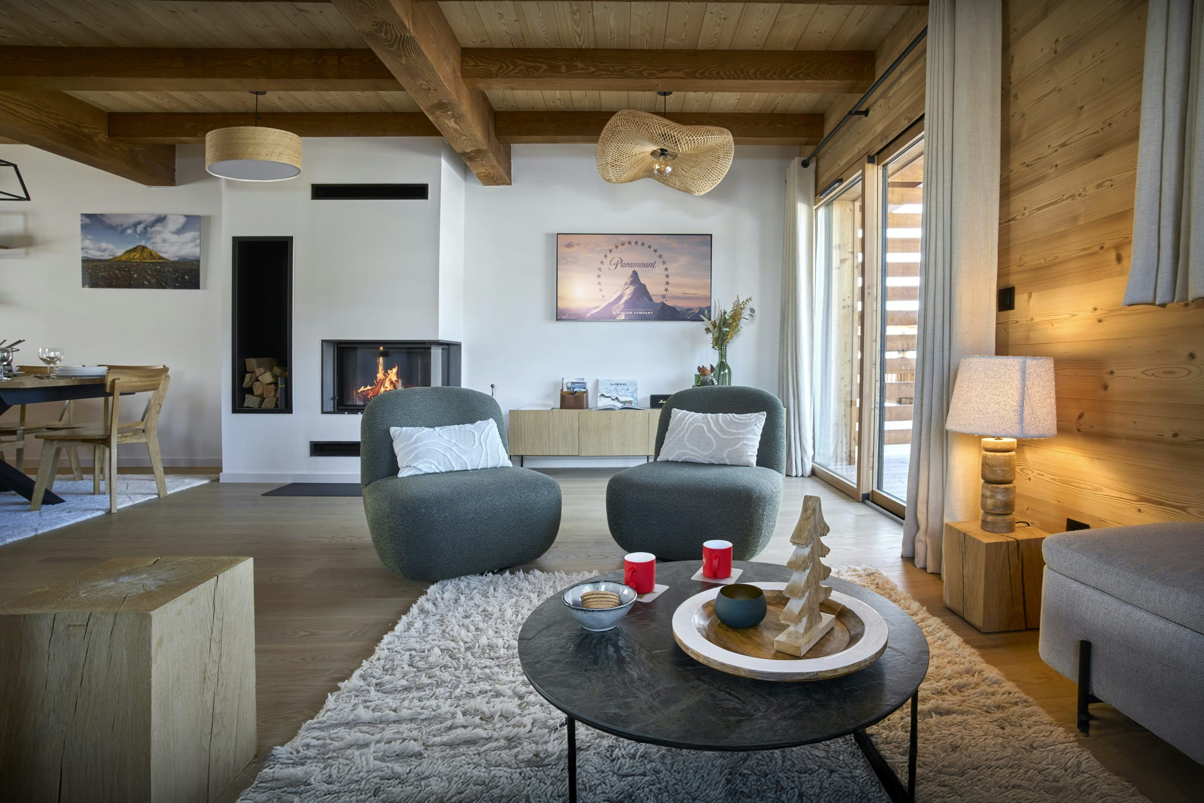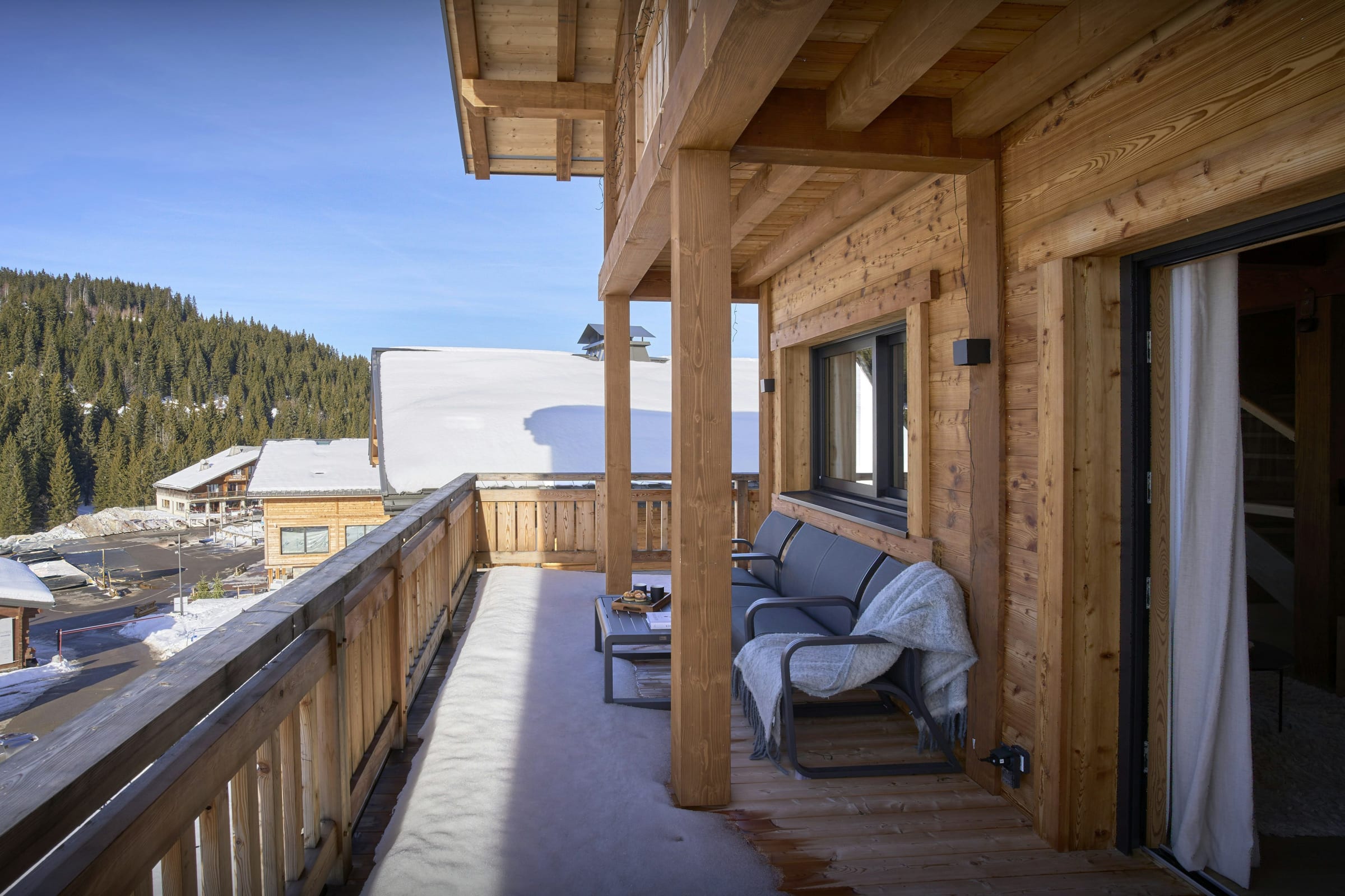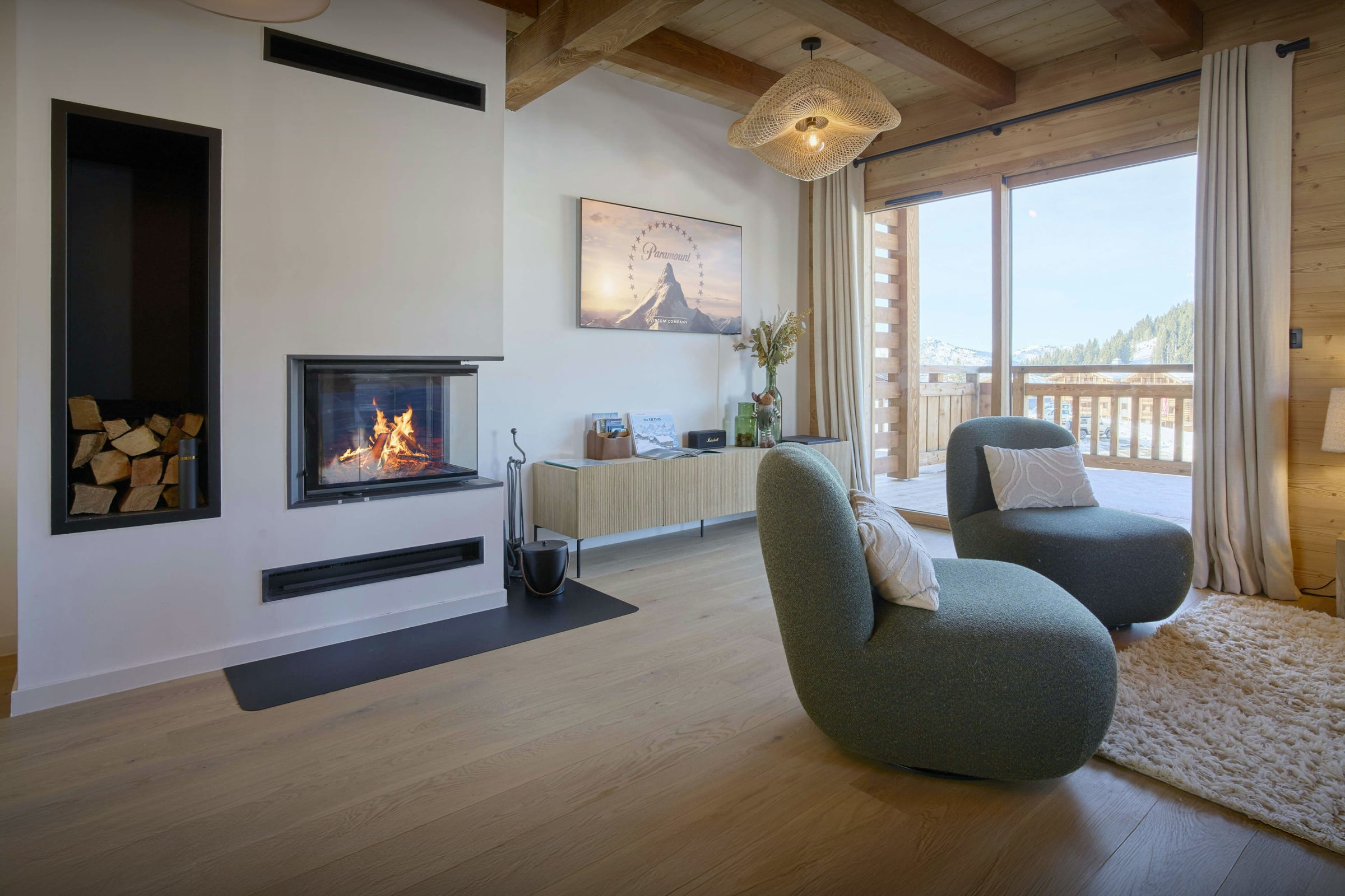 Son salon, ainsi que la terrasse qui le borde sur deux côtés, sont particulièrement agréables pour des retrouvailles après la glisse ou les activités en montagne. La cheminée invite à prolonger la soirée au terme d’une journée en plein air.
