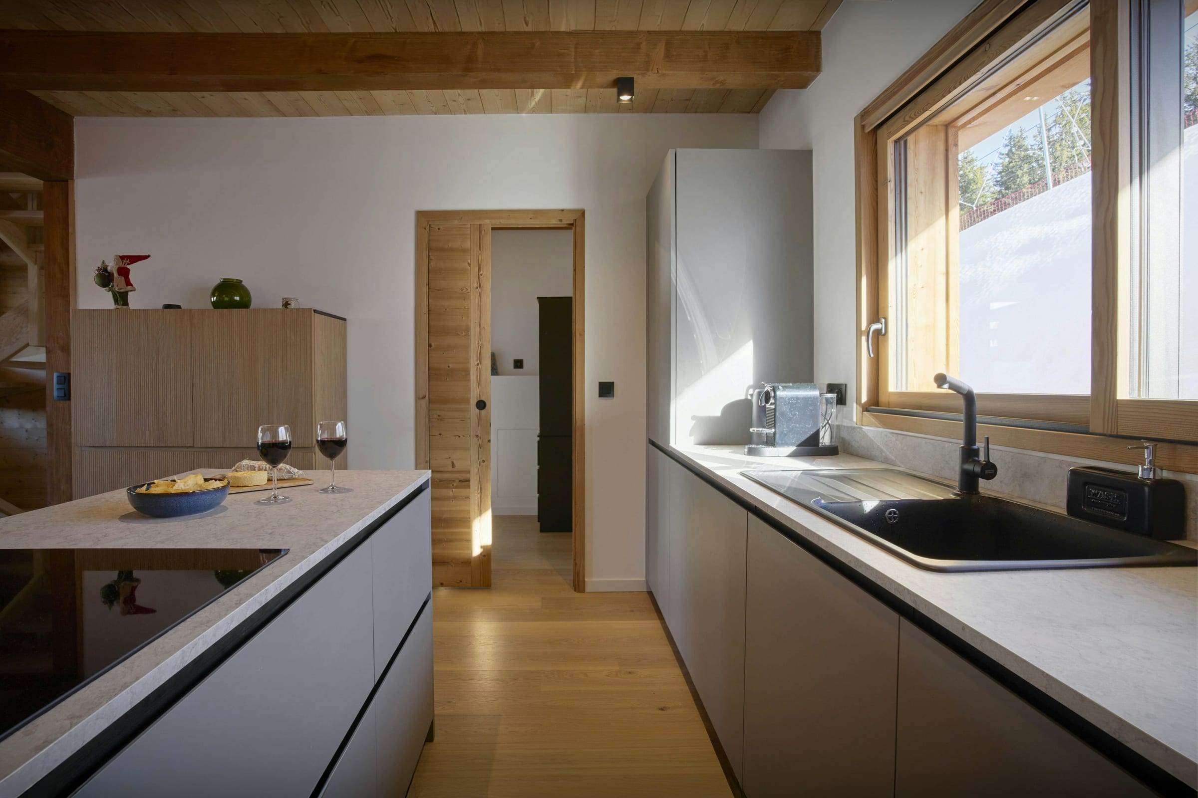 La fluidité de l’ensemble séduit également : tout reste à portée, sans superflu. Son local à skis avec sèche-chaussures facilite les retours de montagne, et ses équipements pratiques (cuisine équipée, lave-linge, garage) permettent d’apprécier tout autant un séjour prolongé.