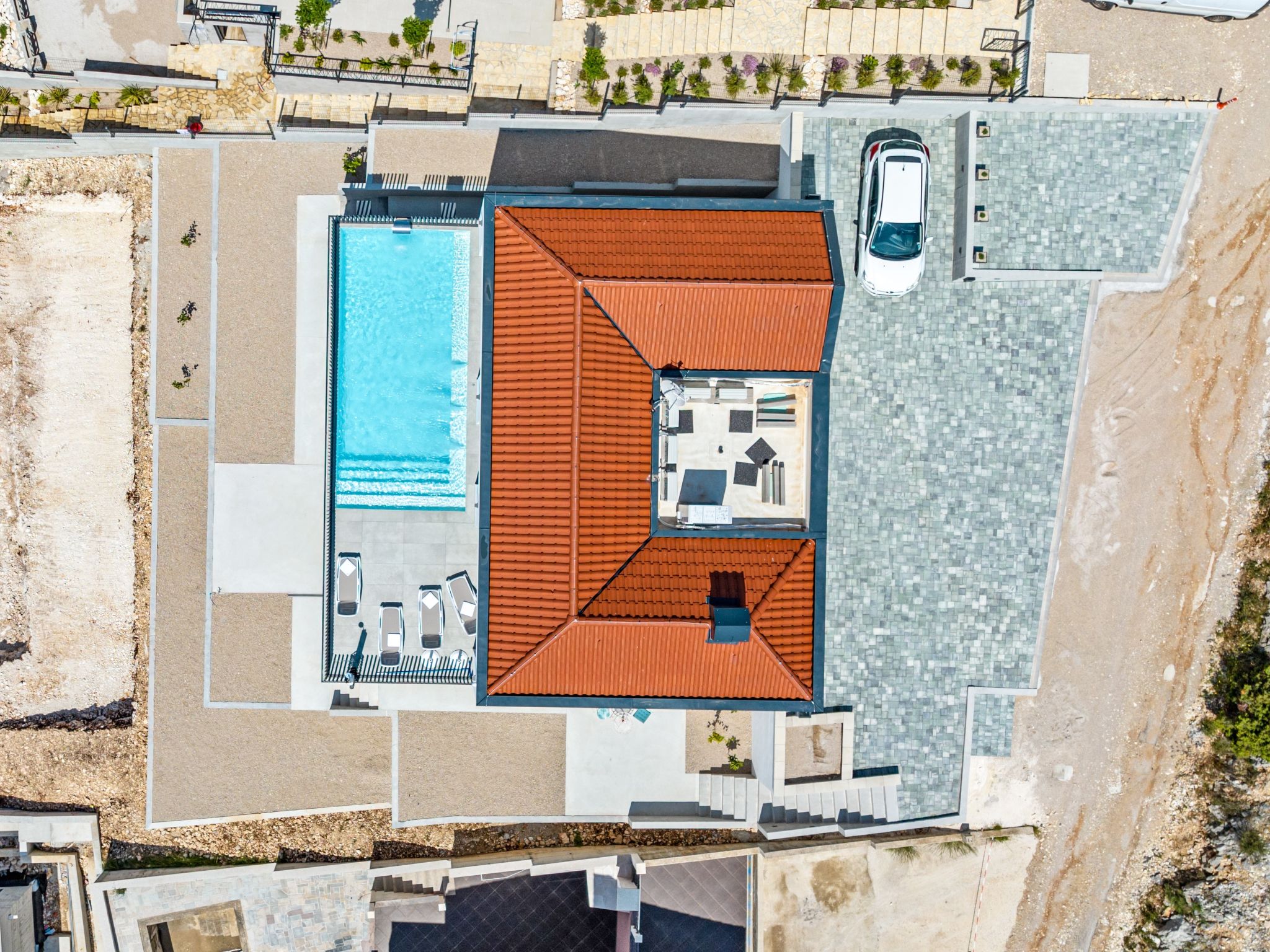 Žaborić à 16 km de Šibenik: Villa "The Tinel". À 450 m de la mer, à 450 m de la plage. A usage privé: terrain 560 m2 (clôturé), piscine rectangulaire (8 x 4 m, 24 m2, profondeur 100 - 140 cm, disponibilité saisonnière: 15.Avr. - 31.Oct.). Douche extérieure, tonnelle (20 m2), terrasse (40 m2), barbecue, entretien de la piscine par le propriétaire/jardinier. Infrastructures de la Maison: accès internet, sauna, lave-linge, sèche-linge. Place de parking près de la maison sur le terrain. Borne de recharge électrique. Magasins 1.5 km, restaurant 500 m, arrêt de bus 200 m.