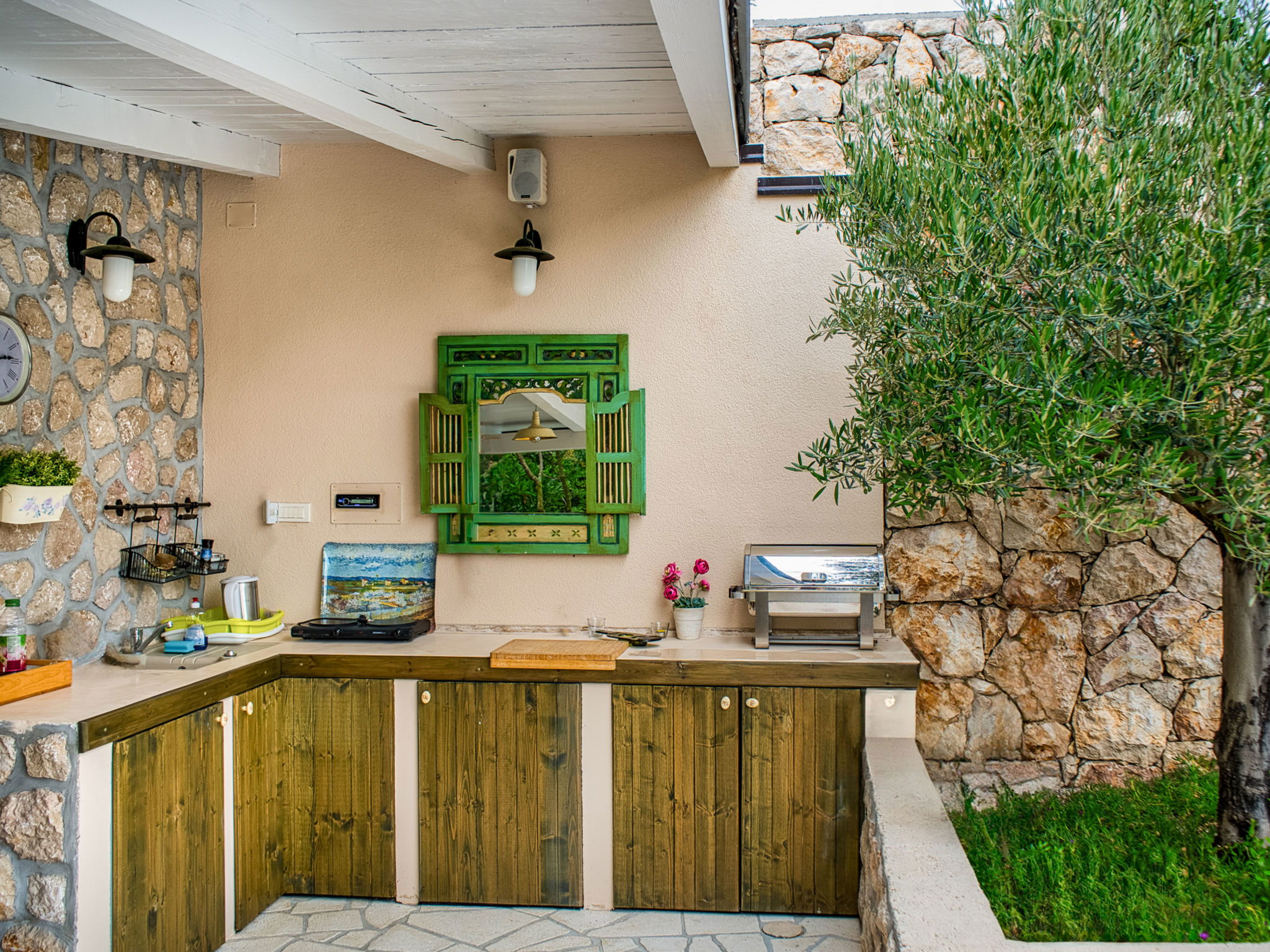 Maison à 2 apts "Villa Mo-Re". À 750 m du centre de Novi Vinodolski, situation tranquille, ensoleillée, à 20 m de la mer, à 20 m de la plage, dans la verdure. En commun: terrain 1'800 m2 (clôturé), jardin avec pelouse 300 m2, arbres, piscine rectangulaire chauffée (4 x 8 m, profondeur 140 cm, disponibilité saisonnière: 20.Avr. - 15.Oct.) avec marches intérieures. Douche extérieure, terrasse (13 m2), meubles de jardin (balançoire, bac à sable). Infrastructures de la Maison: accès internet, sauna (en commun). Place de parking près de la maison sur le terrain. Supermarché 400 m, restaurant 130 m, arrêt de bus 1 km, plage de sable 1.2 km plage de graviers 1.2 km, plage de rochers 20 m, plage aménagée 550 m, plage bétonnée 20 m. Marina 300 m, tennis 1.1 km. Sauna à usage partagé dans la petite maison séparée de la propriété principale, à seulement 10 m de la piscine. 2 massages sont inclus dans le prix et sont sur demande.
