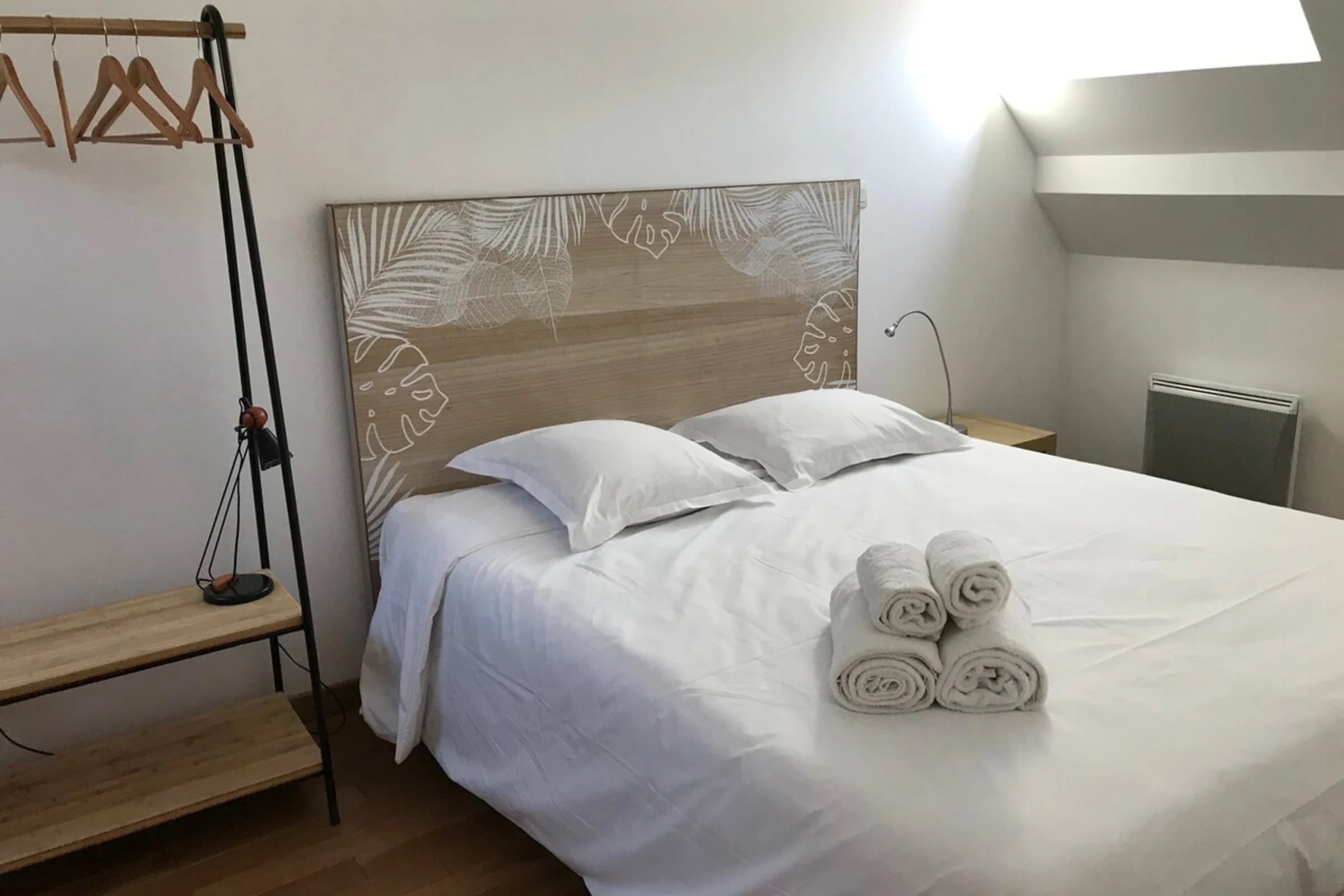 A l'étage vous trouverez les deux chambres avec lits queen-size et des rangements, ainsi que la salle de bains.