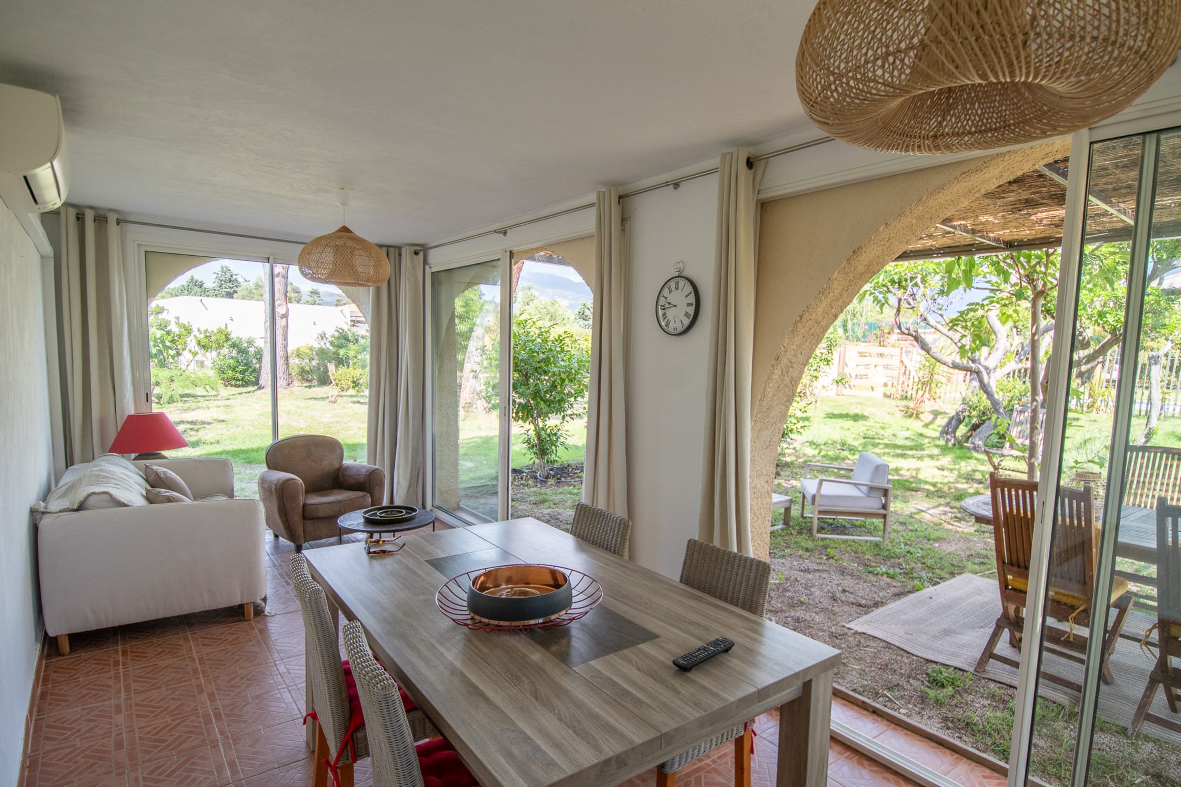 Nichée sur un terrain arboré de 3 000 m², cette location pour 4 personnes vous offre un confort moderne dans un cadre naturel et paisible. Le logement dispose de la climatisation (séjour et halle d'accueil), d’un espace de vie connecté à la terrasse et au jardin, de deux chambres, d'une salle de bain avec douche, et d'une cuisine entièrement équipée.