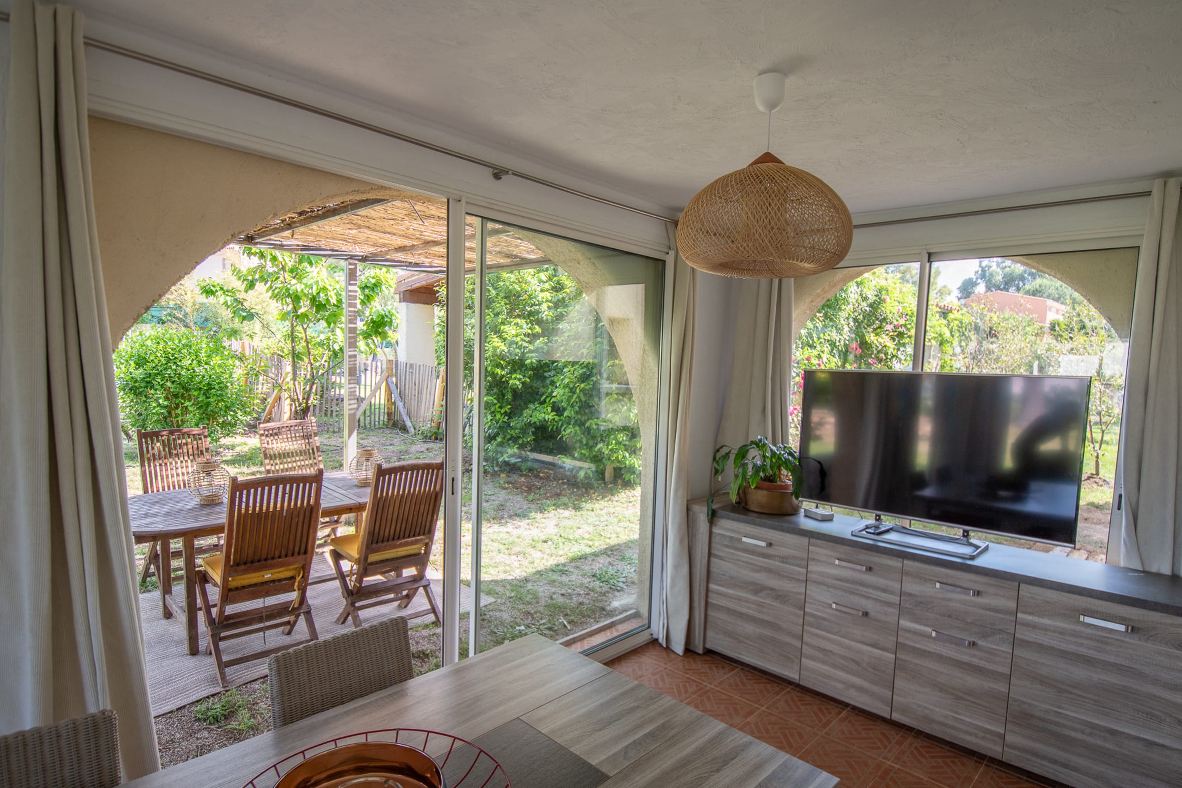 Vous profiterez d’un jardin privatif avec terrasse ombragée, pergola, barbecue et mobilier de jardin. La piscine chauffée, partagée uniquement avec un autre appartement, est accessible d’avril à octobre, et vous promet des moments de détente inoubliables.