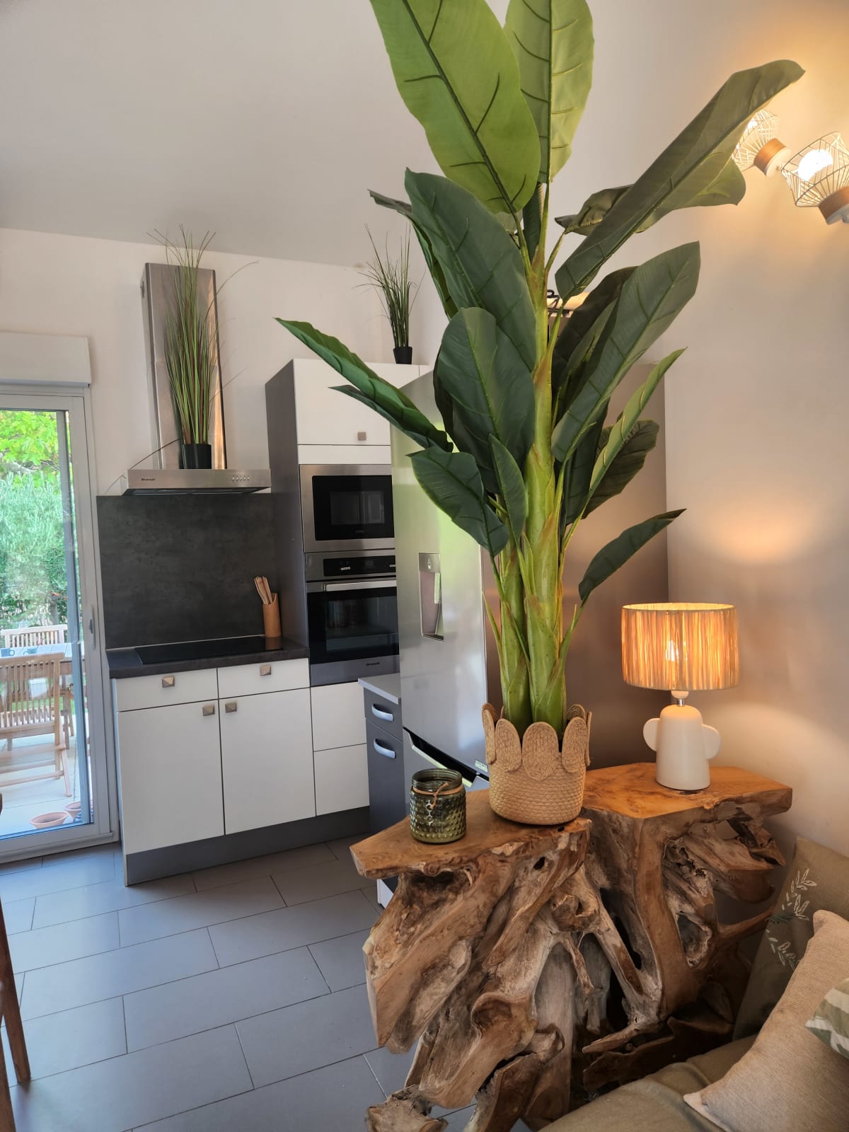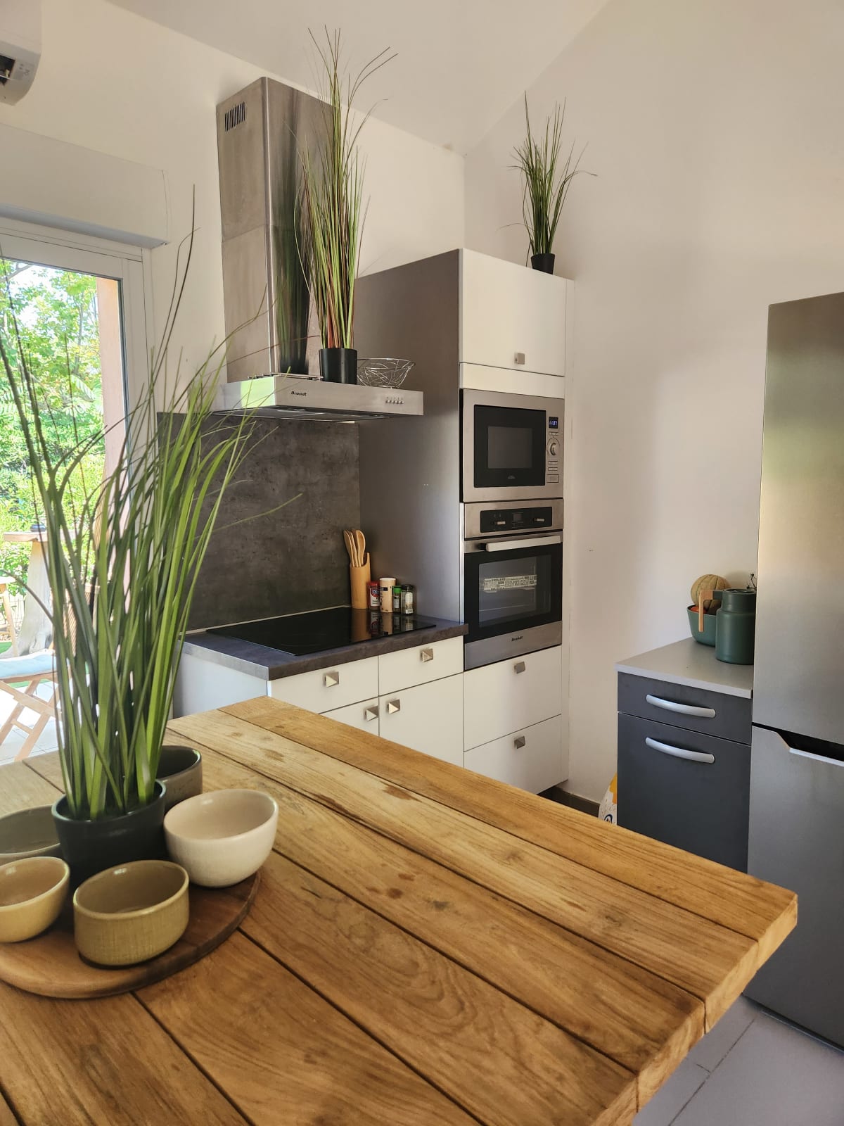 Il dispose d'une cuisine toute équipée avec lave-vaisselle, d'une plancha, du WIFI et d'une place de parking privative.