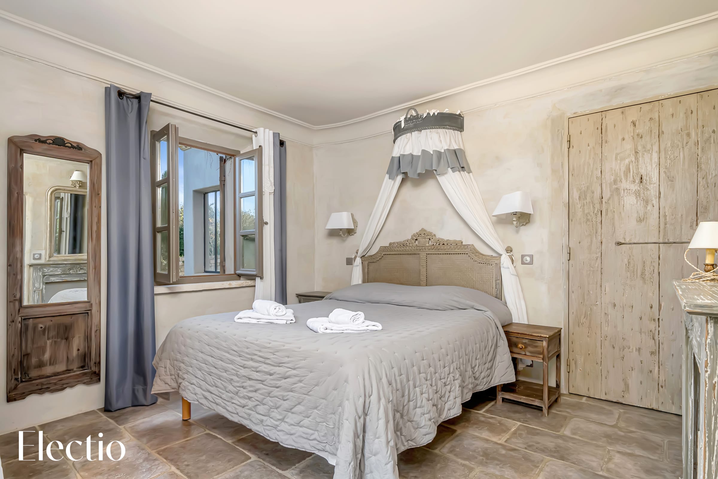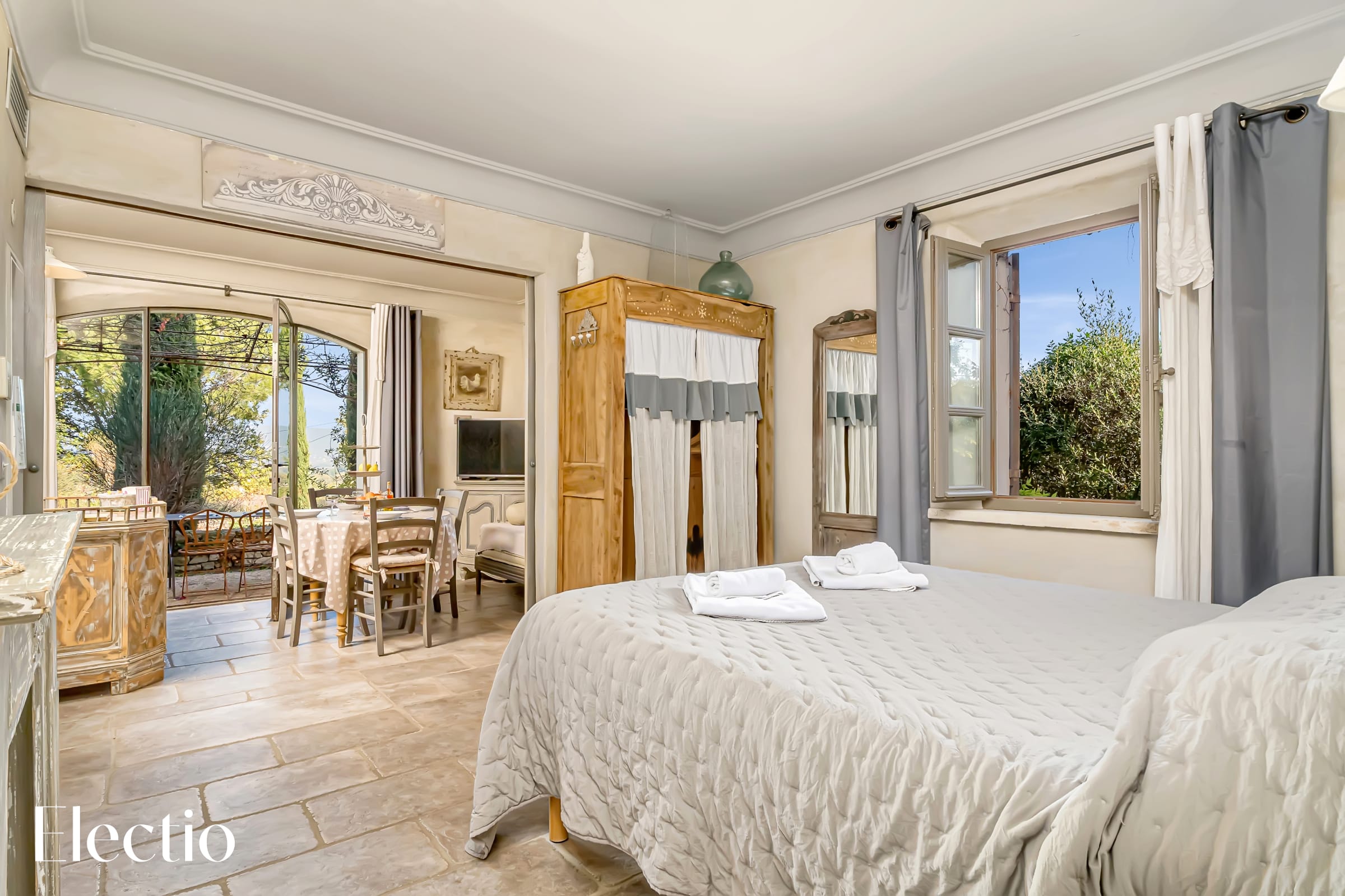 🛏️ Poussez les deux portes coulissantes et entrez dans la chambre, un véritable cocon de sérénité. Avec son espace de rangement discret, son lit en 160x200 cm et ses deux tables de chevet en bois, elle invite au repos et à la détente. La grande fenêtre, baignée de lumière naturelle, dévoile un panorama saisissant sur le Luberon, offrant chaque matin un spectacle apaisant qui prolonge la douceur de cet espace intime.