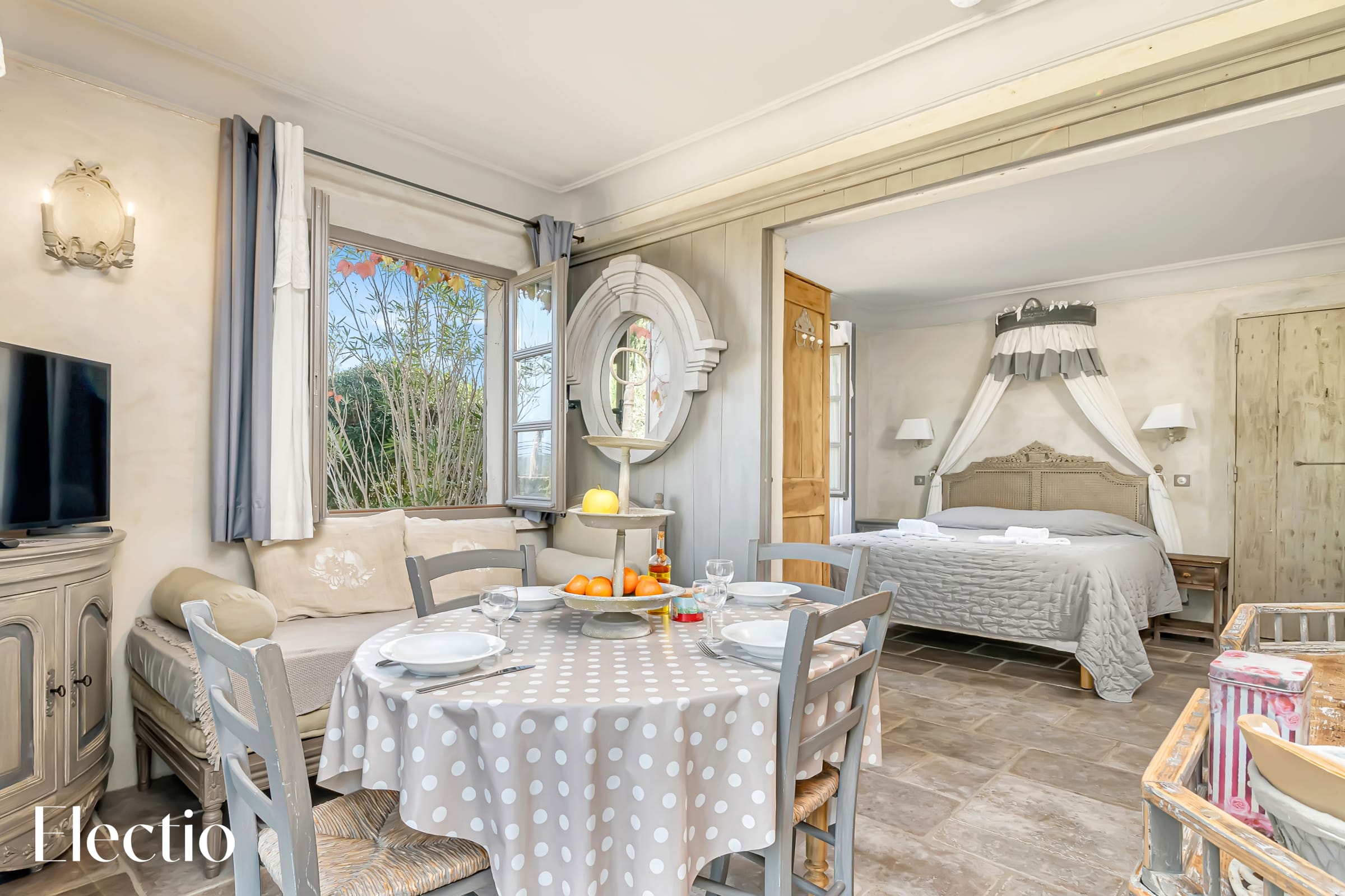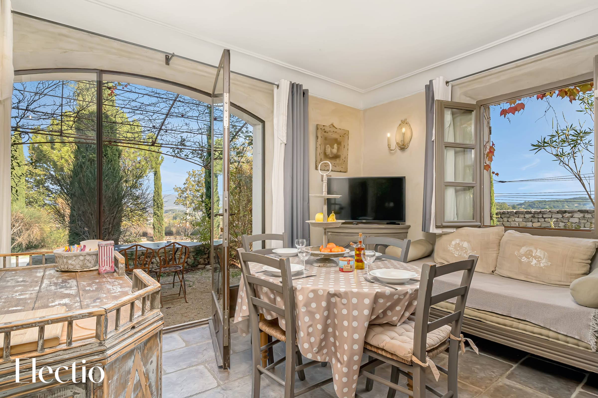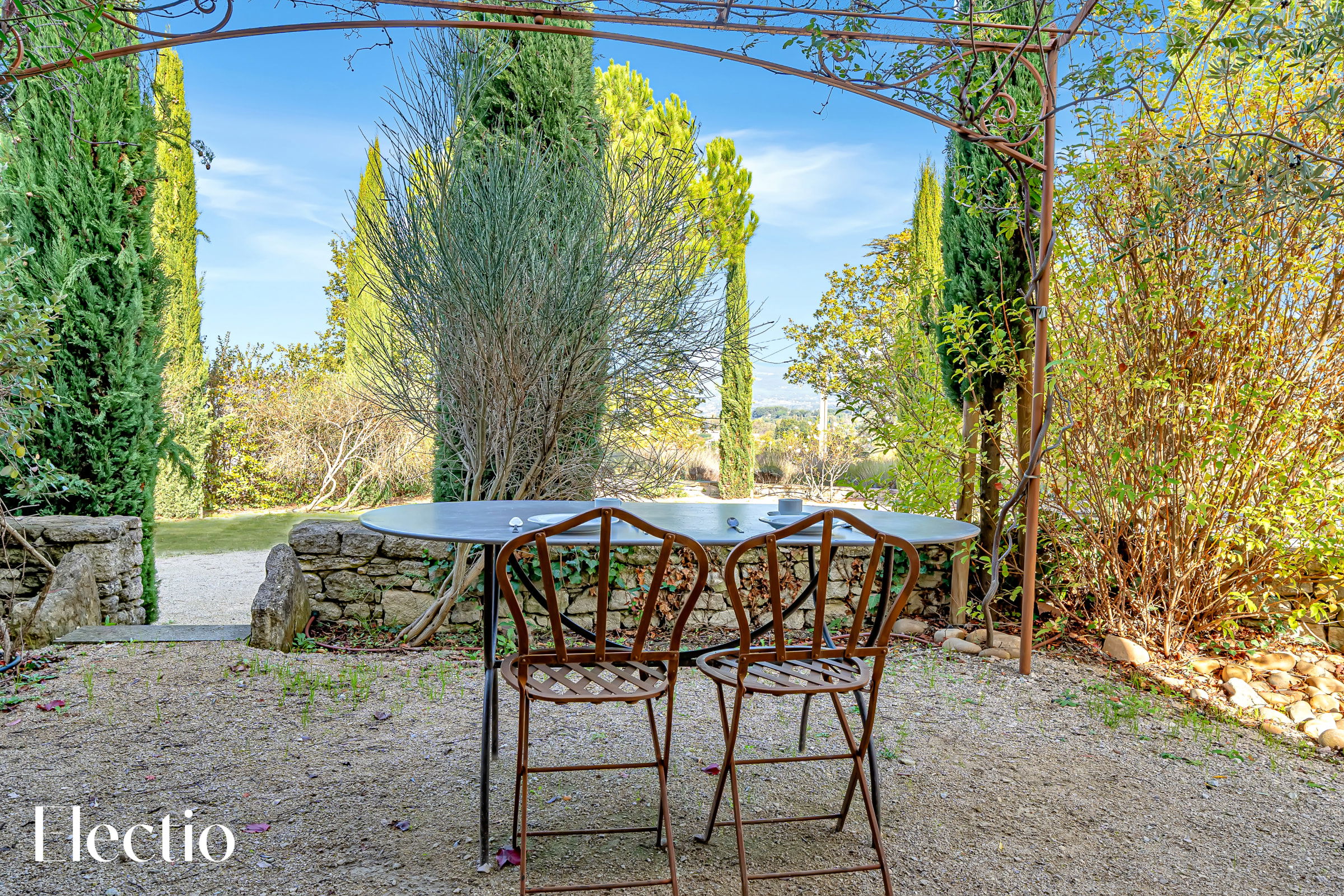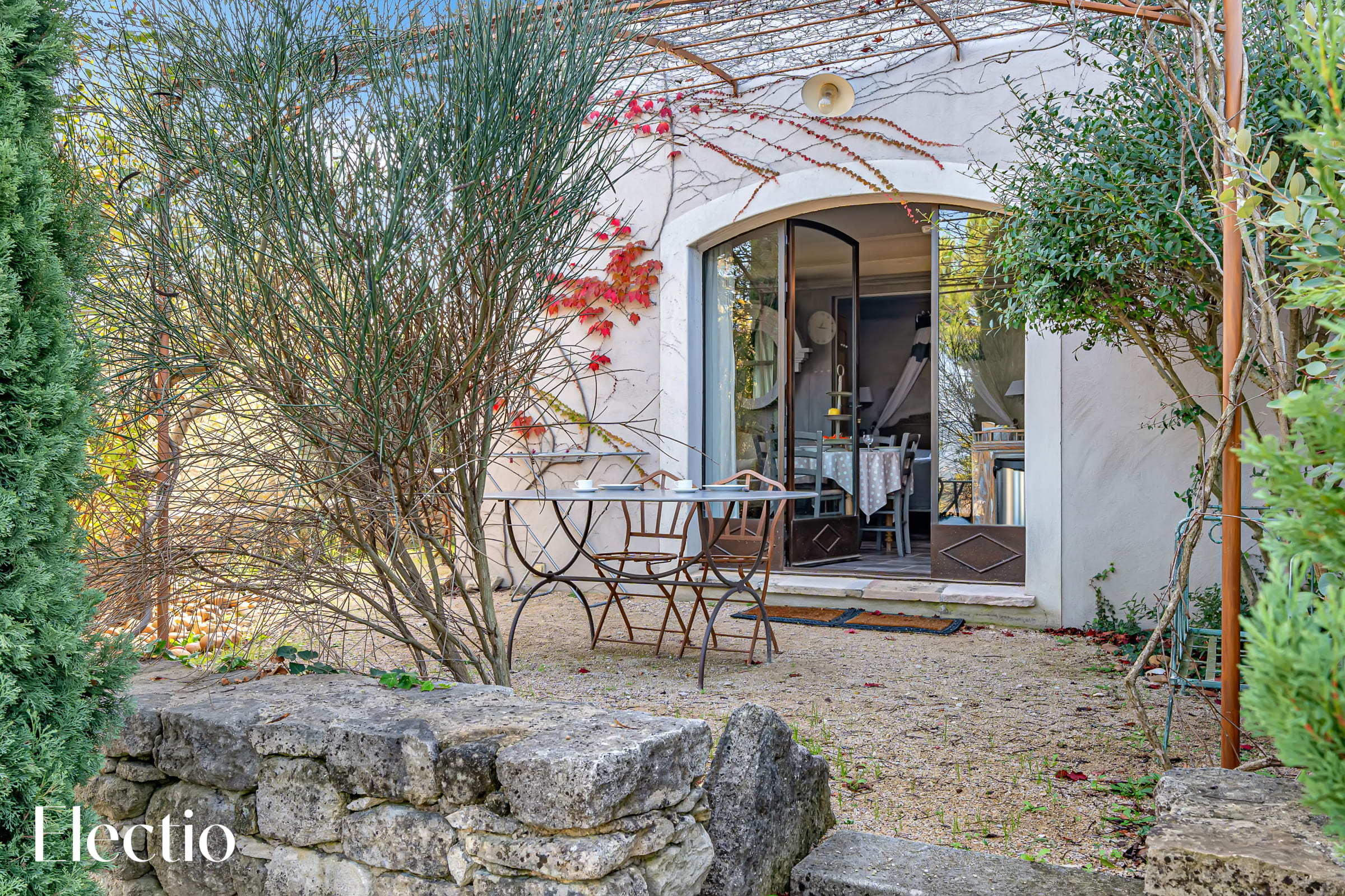 Les extérieurs de la résidence sont magnifiquement aménagés pour vous offrir une expérience authentique de la Provence. Vous y trouverez des espaces ombragés avec pergolas, des rideaux blancs, des platanes et des bancs en pierre pour vous détendre. Un barbecue au charbon de bois est à votre disposition, avec possibilité d’acheter du charbon dans un supermarché à proximité. La végétation typiquement provençale, composée d'oliviers centenaires, de genêts, de lauriers roses et de lavandes, crée une atmosphère envoûtante. Une fontaine et un clocher apportent un charme supplémentaire à l'ensemble.