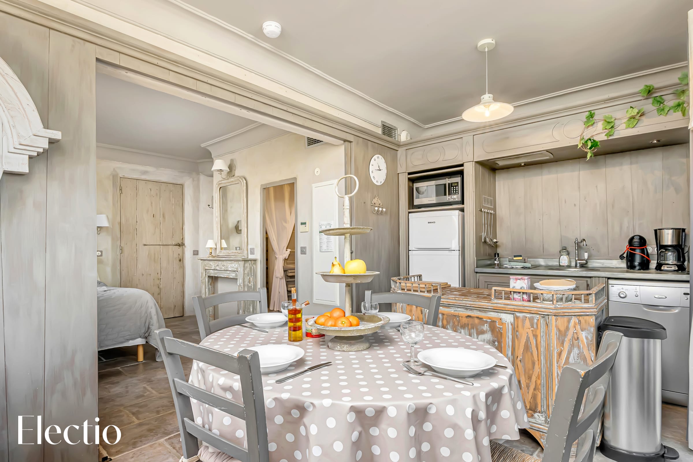 🛋️ Commencez votre voyage en découvrant la pièce de vie, véritable cœur de la maison. Réunissez-vous autour d’une table ovale en bois, propice aux moments de convivialité. La cuisine ouverte, offrant une vue plongeante sur le salon, est parfaitement équipée pour répondre à tous vos besoins : plaque à induction, lave-vaisselle, réfrigérateur encastré, bouilloire, grille-pain, cafetière filtre, machine à expresso et four micro-ondes multifonction. Une vaisselle et une verrerie complètes sont également à votre disposition pour faciliter la préparation de délicieux repas à partager.