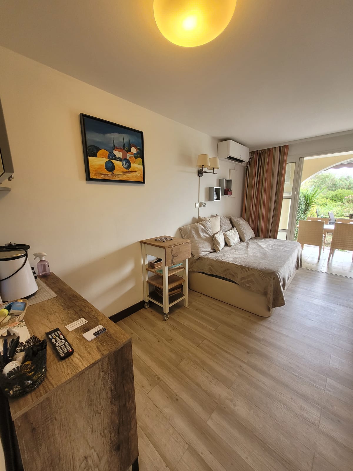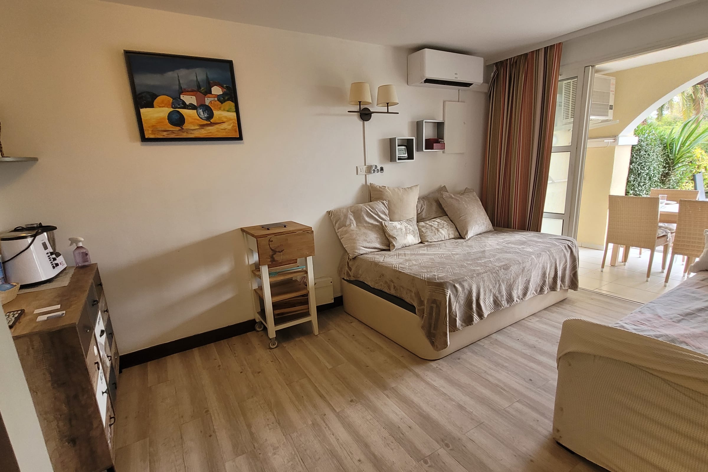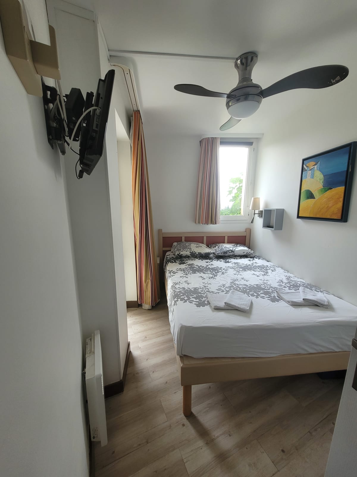 Le logement est de type Appartement, avec climatisation, et peut accueillir jusque 5 personnes (1 chambre avec lit double et deux sofa bed dans le salon) ; un lit parapluie et une chaise haute sont également à disposition sur place. Une TV dans la chambre et une dans le salon.