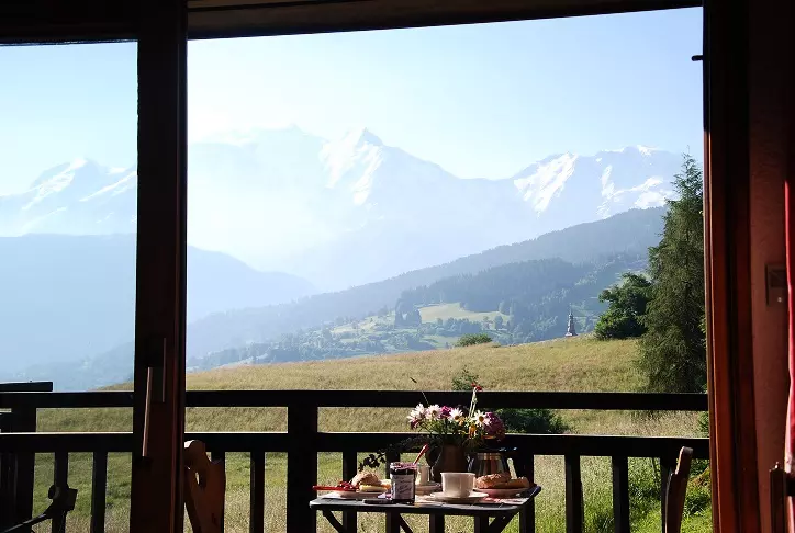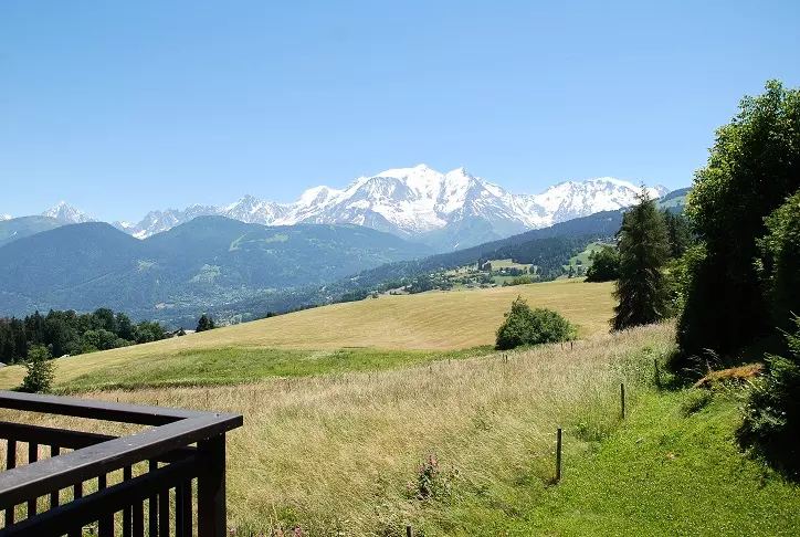 L’appartement est au 1er étage. Il offre une vue sur le Mont-Blanc et dispose d’un balcon.