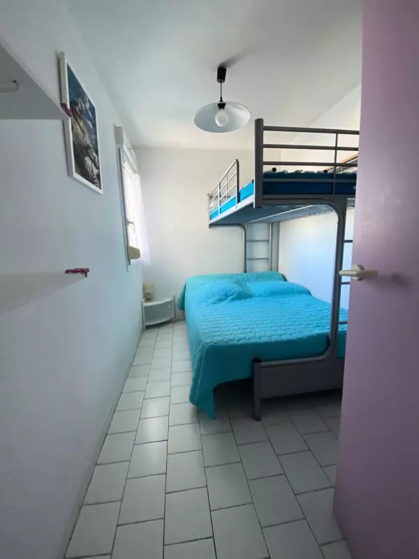 Une seconde chambre avec lit superposé : lit double en bas et lit simple en haut, idéale pour les enfants ou amis.