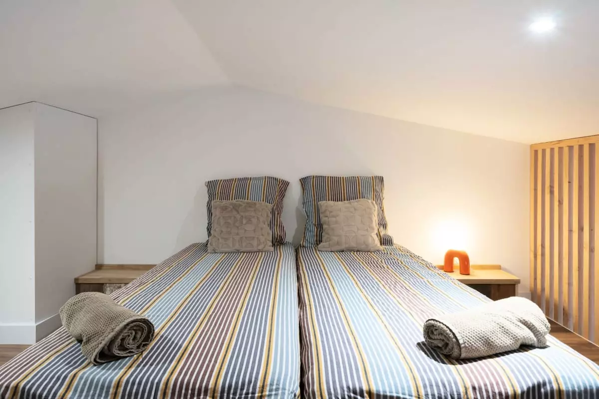 La configuration intérieure a été pensée pour votre plus grand confort et peut accueillir jusqu'à 4 personnes. Vous disposerez d'une première chambre spacieuse dotée d'un lit double de 160x200 et d'une seconde chambre accueillante équipée de deux lits simples de 90x200.