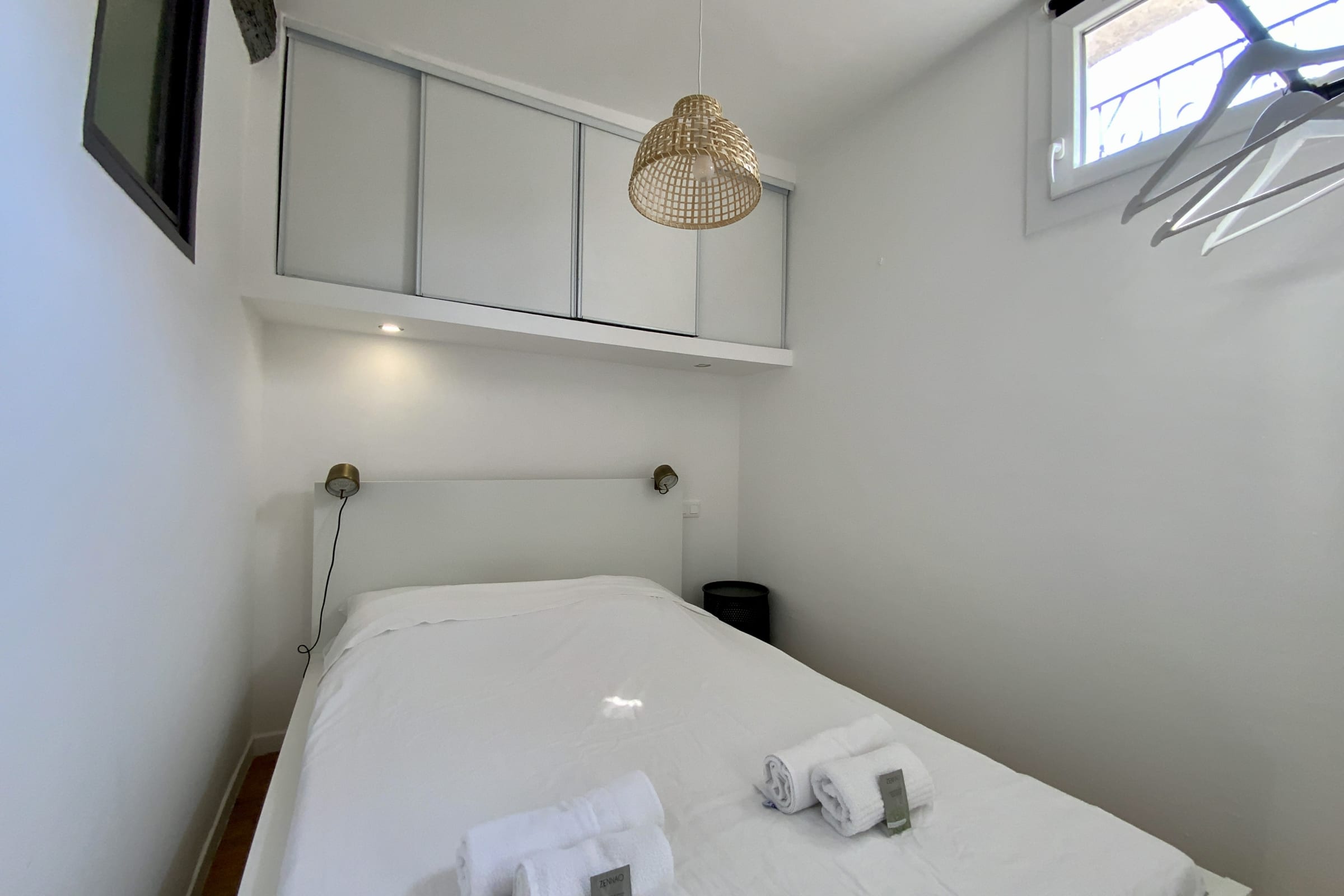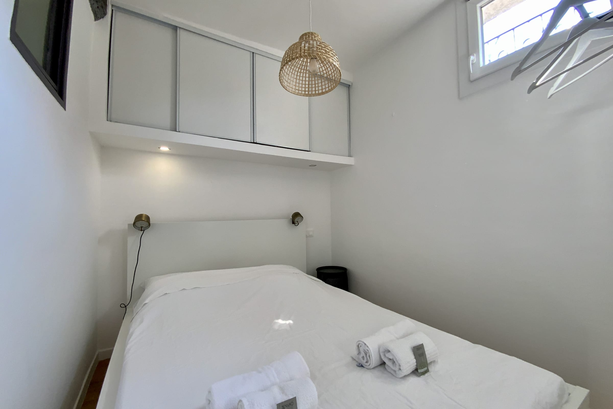 - La chambre est équipée d'un lit double en 140 cm et d'un placard intégré pour le rangement