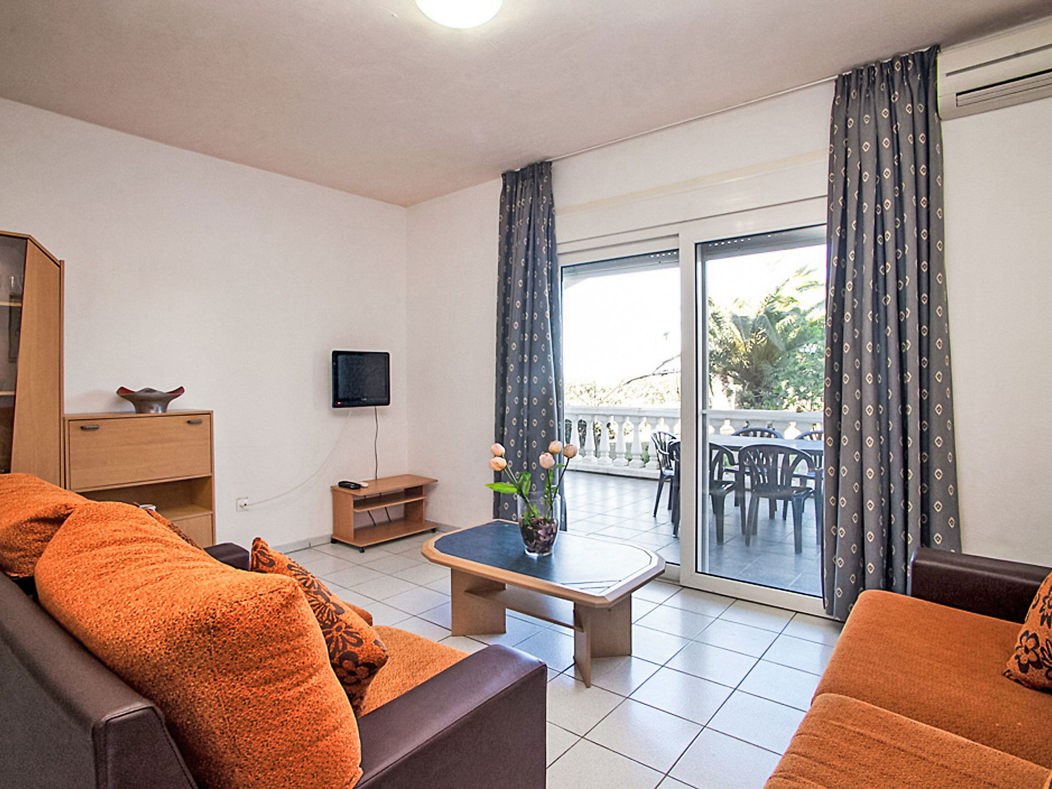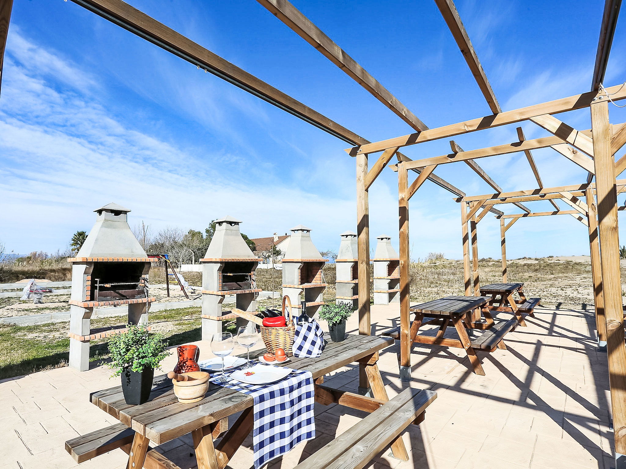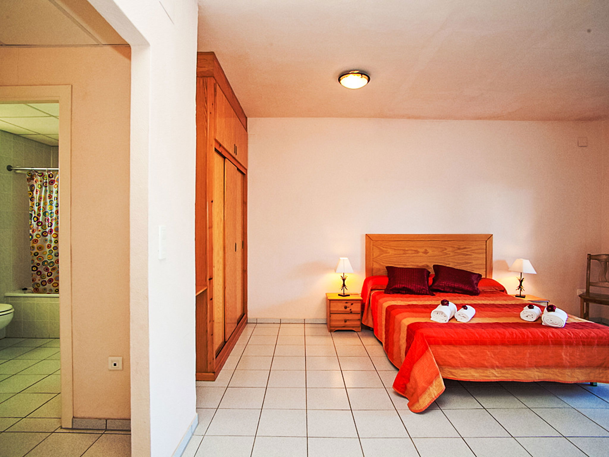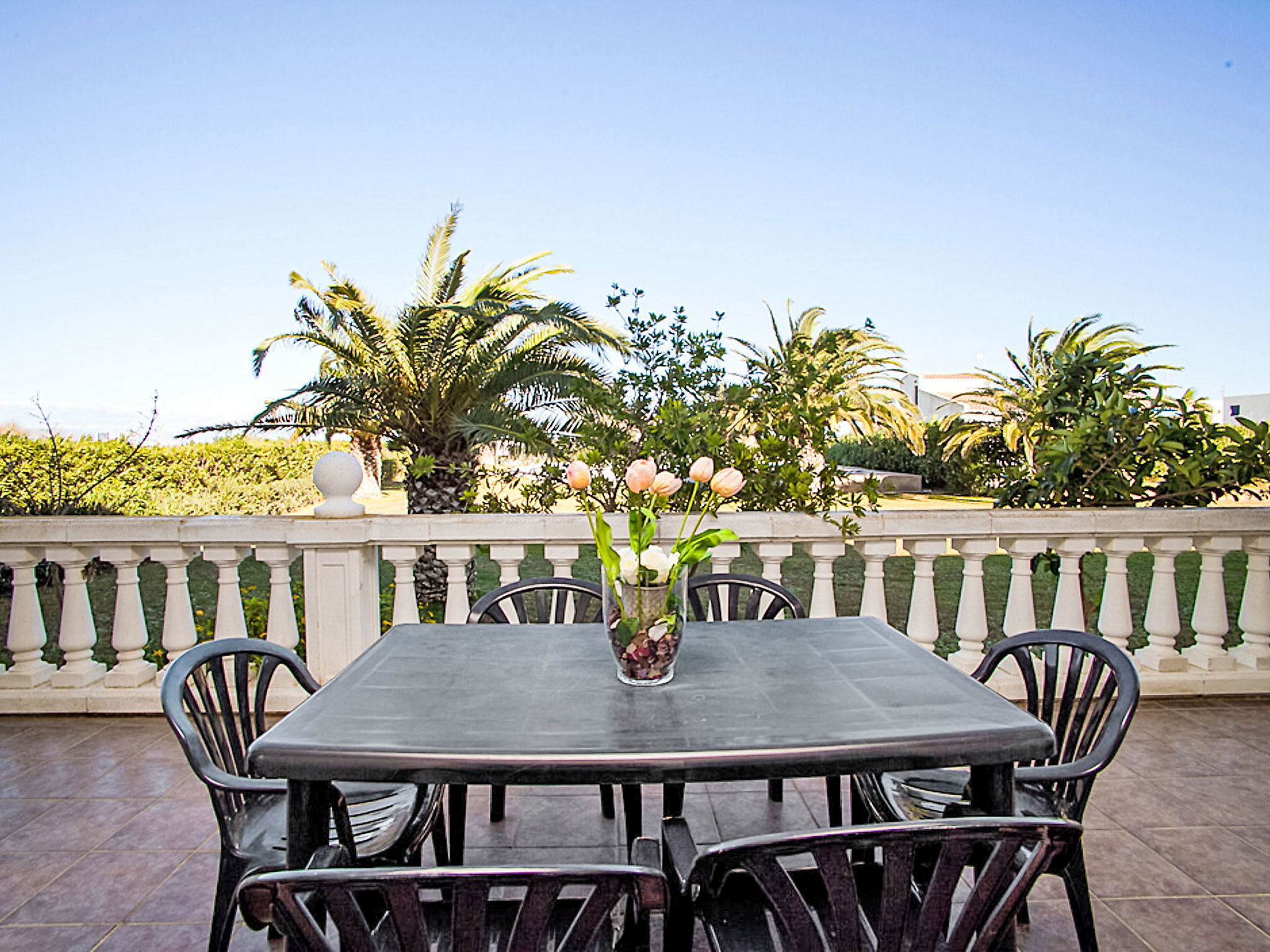 Riumar à 10 km de Deltebre: Belle petite résidence accueillante pour les enfants "Royal Delta", de 2 étages, environnée par les champs. 20 appartements dans la résidence. Situation tranquille, ensoleillée, à 50 m de la mer, à 50 m de la plage, accès direct à la plage. En commun: beau jardin avec pelouse, piscine rectangulaire (20 x 10 m, disponibilité saisonnière: 01.Jan. - 31.Dec.) avec marches intérieures. Bassin pour les enfants, douche extérieure, tennis, barbecue. Infrastructures de la Maison: Connexion WIFI. Place de parking sur le terrain. Magasins, restaurant 100 m, arrêt de bus "Riumar" 1 km. Veuillez noter: équipement pour bébés sur demande. Groupes de jeunes sur demande seulement. La photo ne montre qu’un exemple de location de vacances.