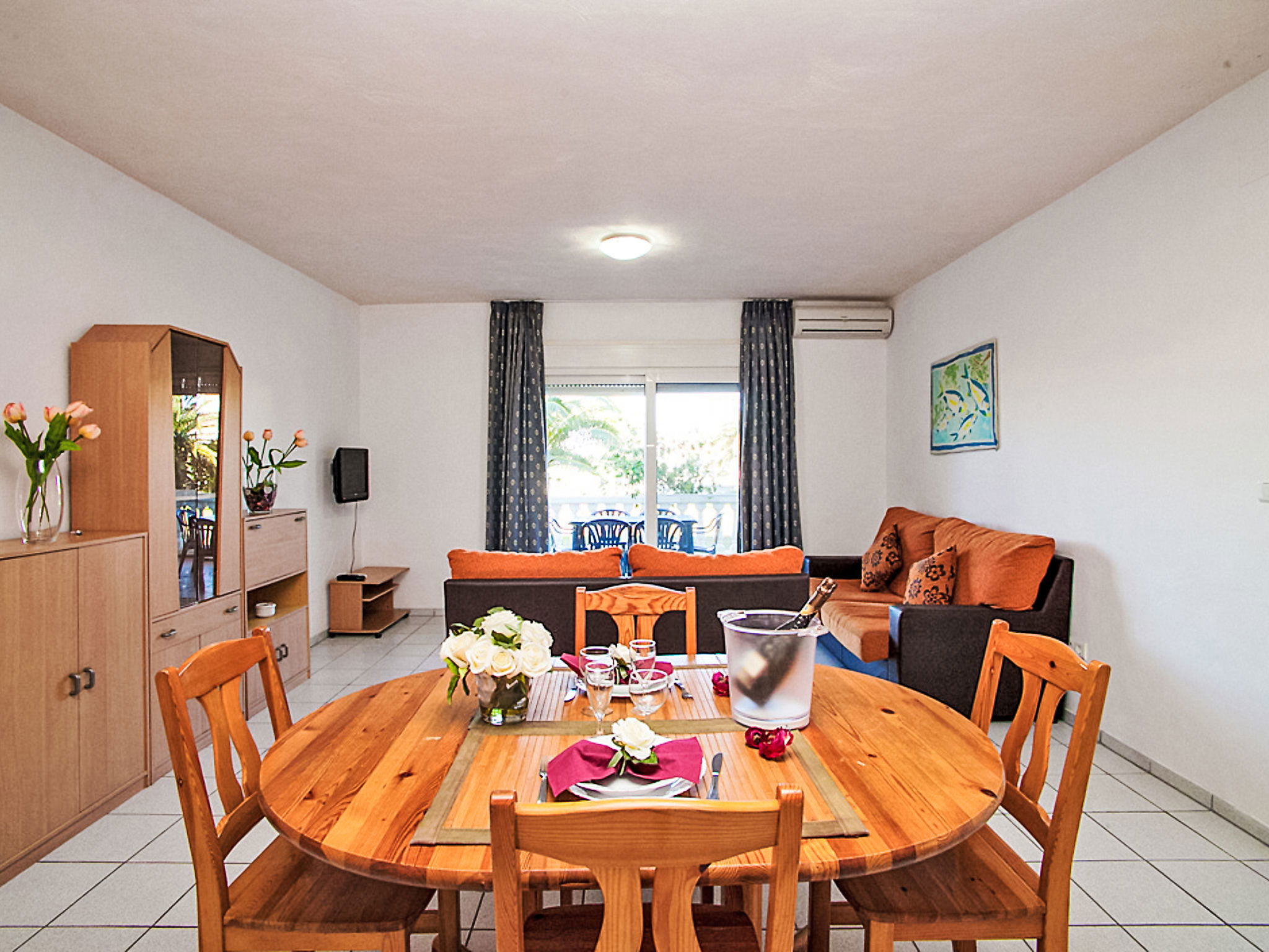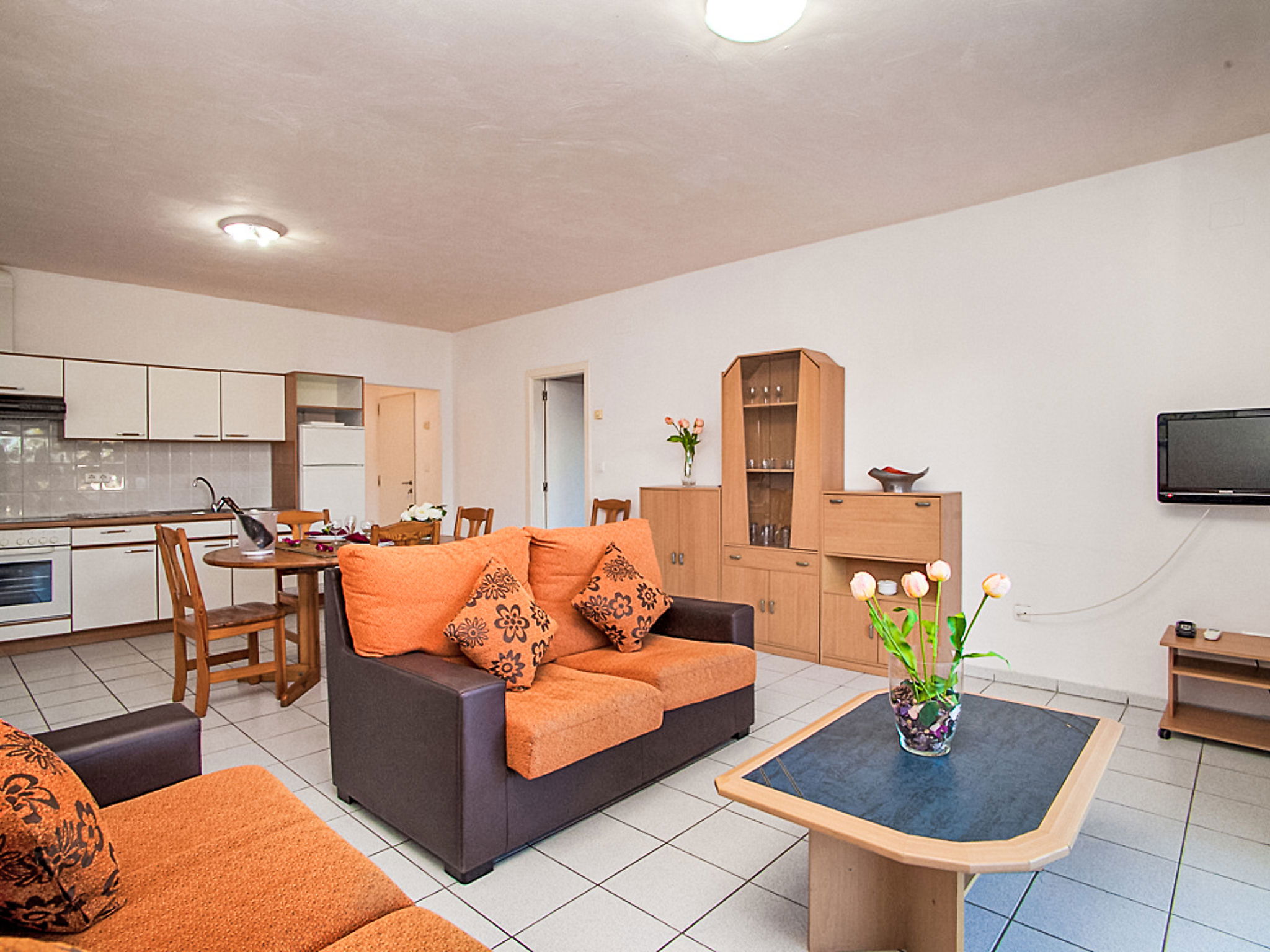 Appartement de 4 pièces 115 m2, au rez-de-chaussée. Aménagement fonctionnel et confortable: séjour/salle à manger avec TV (satellite) et air-conditionné. Sortie sur la terrasse. 1 chambre avec 1 grand-lit. Sortie sur la terrasse. 1 chambre avec 2 lits. 1 chambre avec 2 lits. Cuisine ouverte (four, X plaques vitrocéramiques, micro-ondes, cafetière électrique). Bain/douche/WC. Chauffage par le sol. Grande terrasse. Meubles de terrasse. Vue sur la piscine et le jardin. A disposition: lave-linge. Internet (Connexion WIFI, gratuit). Adapté(e) aux familles. Maximum 2 animaux/ chiens autorisés. HUTTE000935