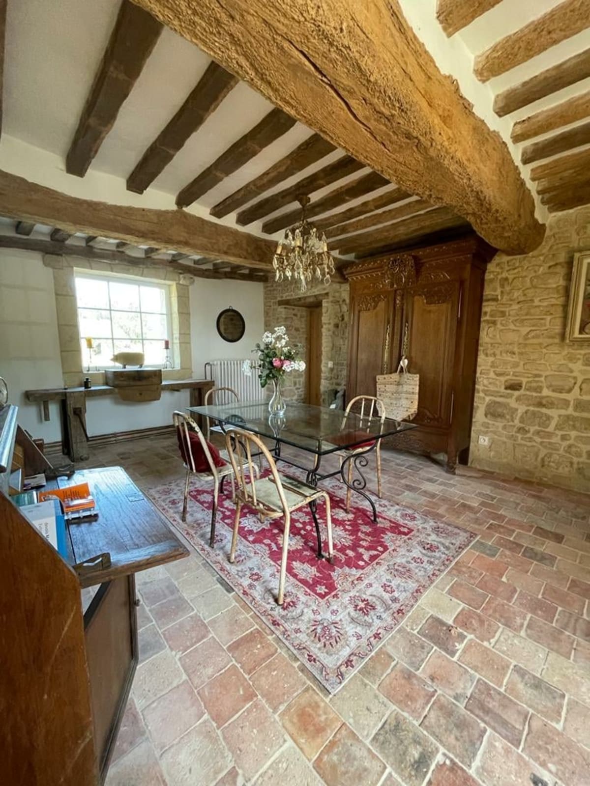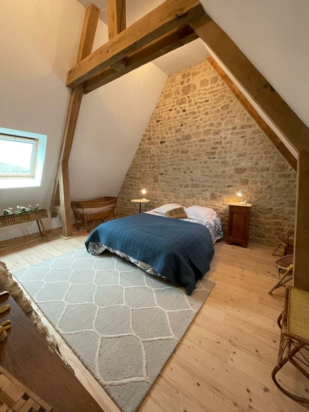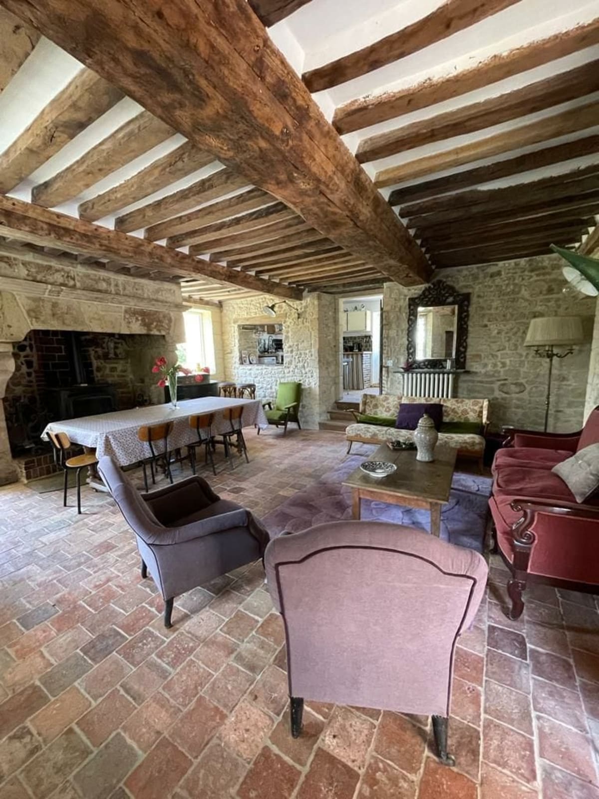 Cet ancien corps de ferme vous ravira par son authenticité. Vous disposez à l'étage de 4 chambres, 4 lits doubles, 3 lits simples, 2 salles de douches et 2 toilettes.