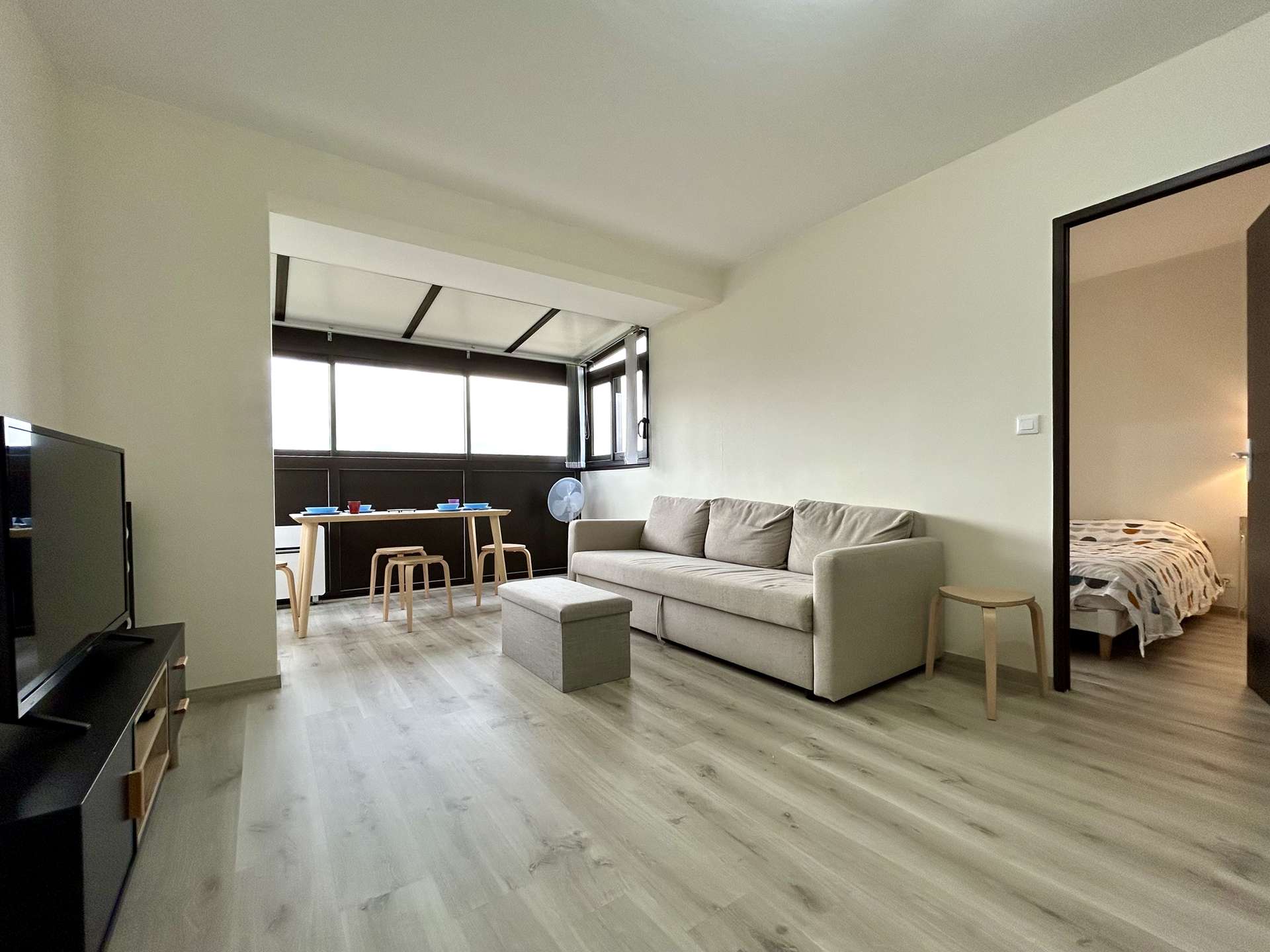 - Une pièce de vie lumineuse avec TV
