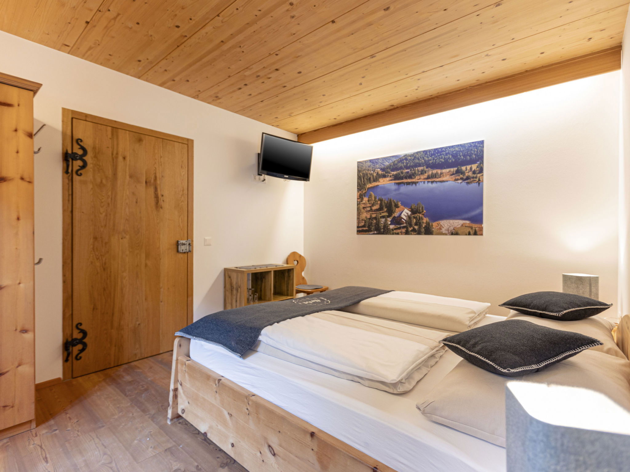 "6_Alp - Samspitze 1", Appartement de 3 pièces 61 m2. Logement idéal pour 6 adultes. Séjour avec 1 divan-lit, 1 lit gigogne et TV. 1 chambre avec 1 lit double et TV. 1 chambre avec 1 lit double. Cuisine ouverte (four, lave-vaisselle, 4 plaques à induction, grille-pain, bouilloire électrique, congélateur, cafetière électrique). 2 douches/WC. Terrasse 47 m2. A disposition: sèche-cheveux. Internet (Connexion WIFI, gratuit). Veuillez noter: logement non-fumeur. Maximum 2 animaux/ chiens autorisés. Détecteur de fumée. 50503-004664-2022
