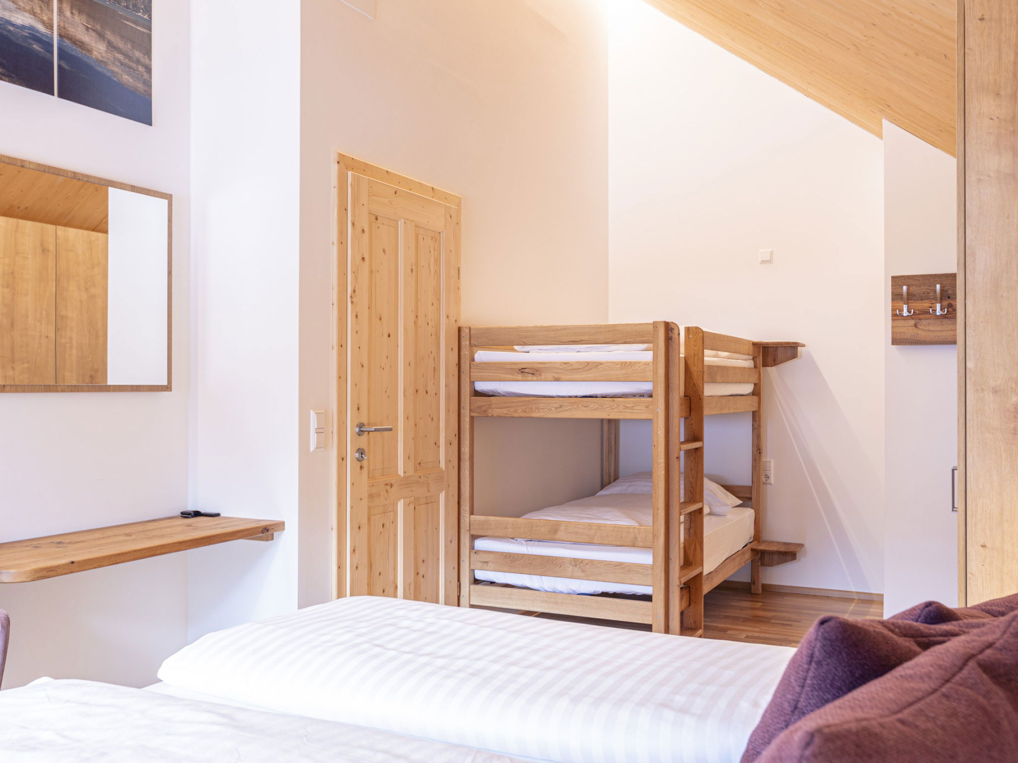 "6_Alp - Chalet Fanningberg", chalet 3 pièces 110 m2. Logement idéal pour 8 adultes. Séjour avec 1 divan-lit, 1 lit gigogne et TV. 1 chambre avec 1 grand-lit et TV. 1 chambre avec 1 x 2 lits superposés, 1 grand-lit. Cuisine ouverte (four, lave-vaisselle, 4 plaques vitrocéramiques, grille-pain, bouilloire électrique, micro-ondes, congélateur, cafetière électrique). Bain/WC, douche/WC. Balcon, terrasse. A disposition: lave-linge, sèche-cheveux. Internet (Connexion WIFI, gratuit). Place de parking (2 Voitures) près de la maison. Veuillez noter: logement non-fumeur. Maximum 2 animaux/ chiens autorisés.