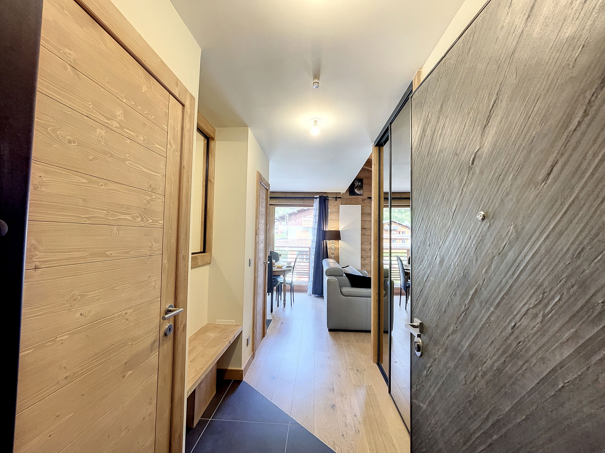 Dans la lignée des chalets haut-savoyards, cet appartement de standing allie avec élégance authentique de la montagne à des éléments de modernité intemporelle, insufflant ainsi une ambiance chaleureuse et raffinée au cœur même du centre de la station des Gets.