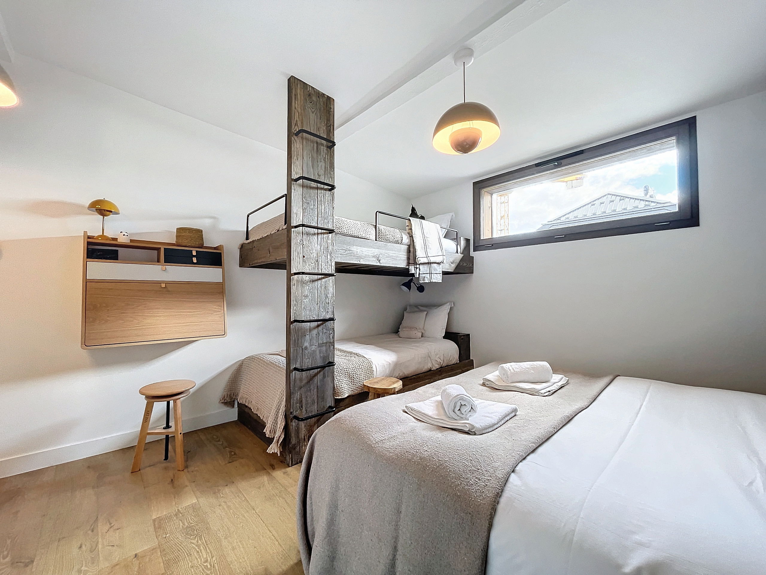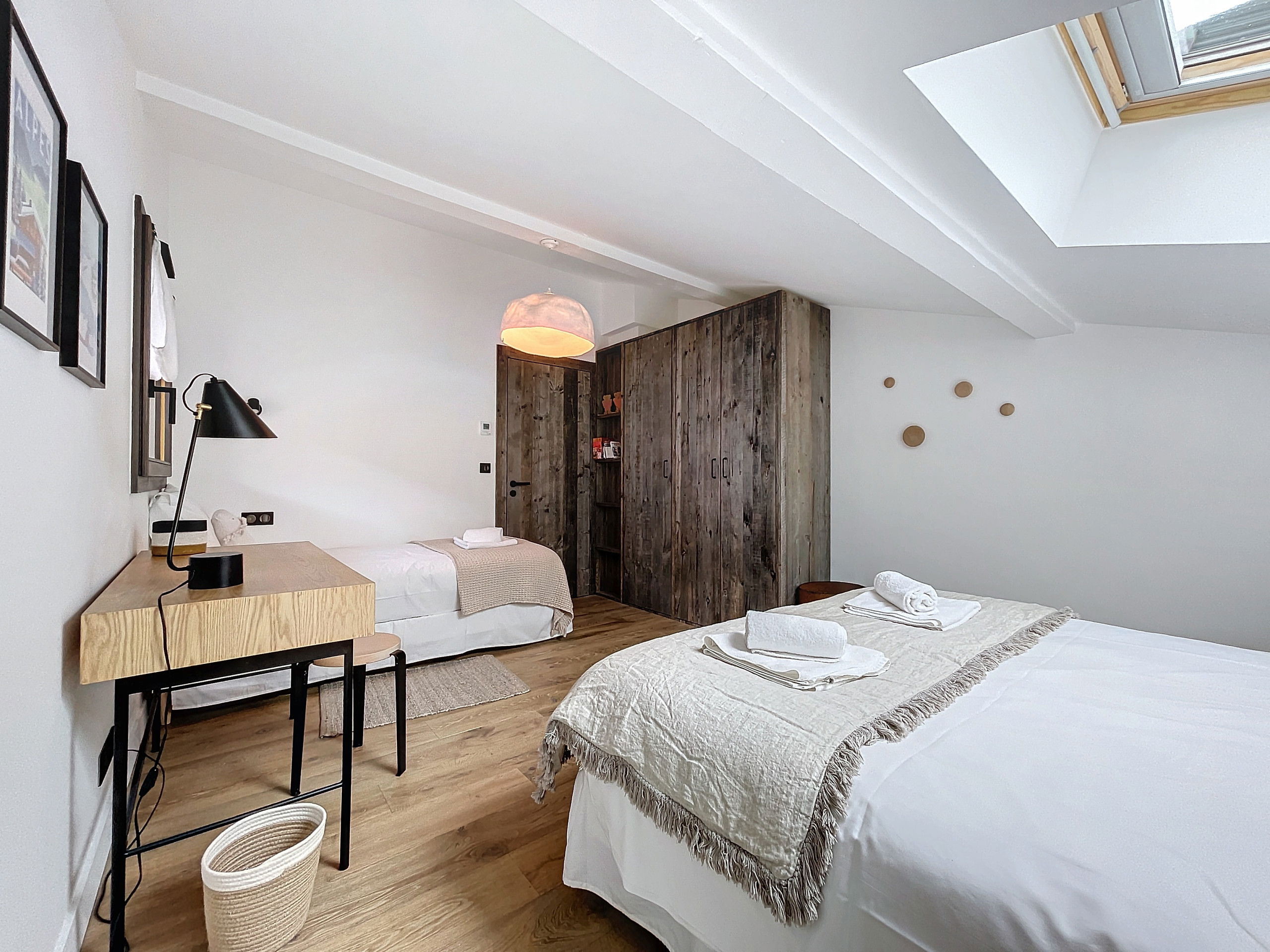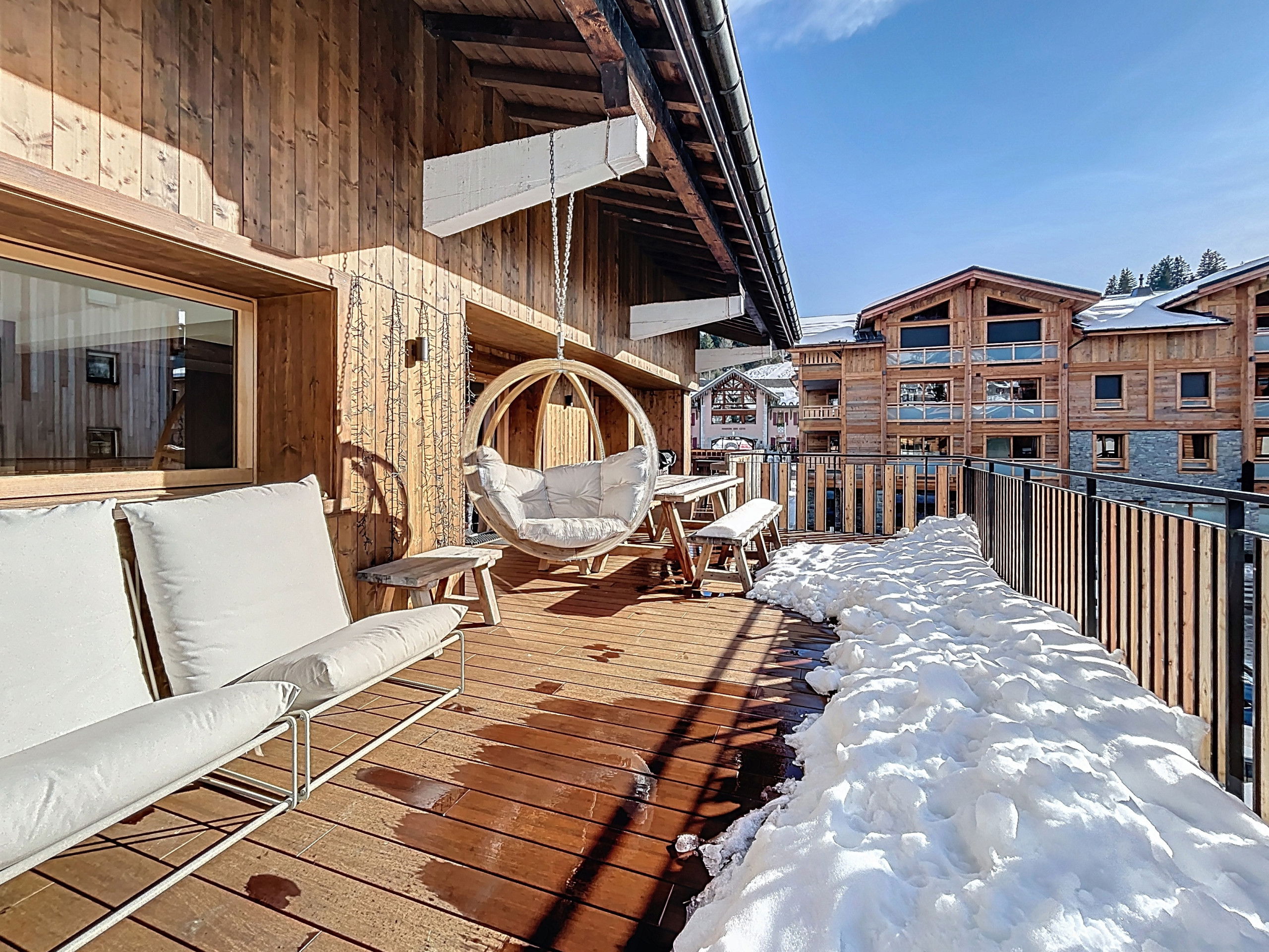 Dès l'entrée, vous serez séduit par les volumes généreux et la lumière qui baigne cet appartement. Avec ses trois chambres spacieuses et sa mezzanine douillette, il peut accueillir jusqu'à 11 personnes, parfait pour des séjours en famille ou entre amis. Chaque pièce invite à la détente après une journée sur les pistes, grâce à une décoration soignée et des matériaux nobles.