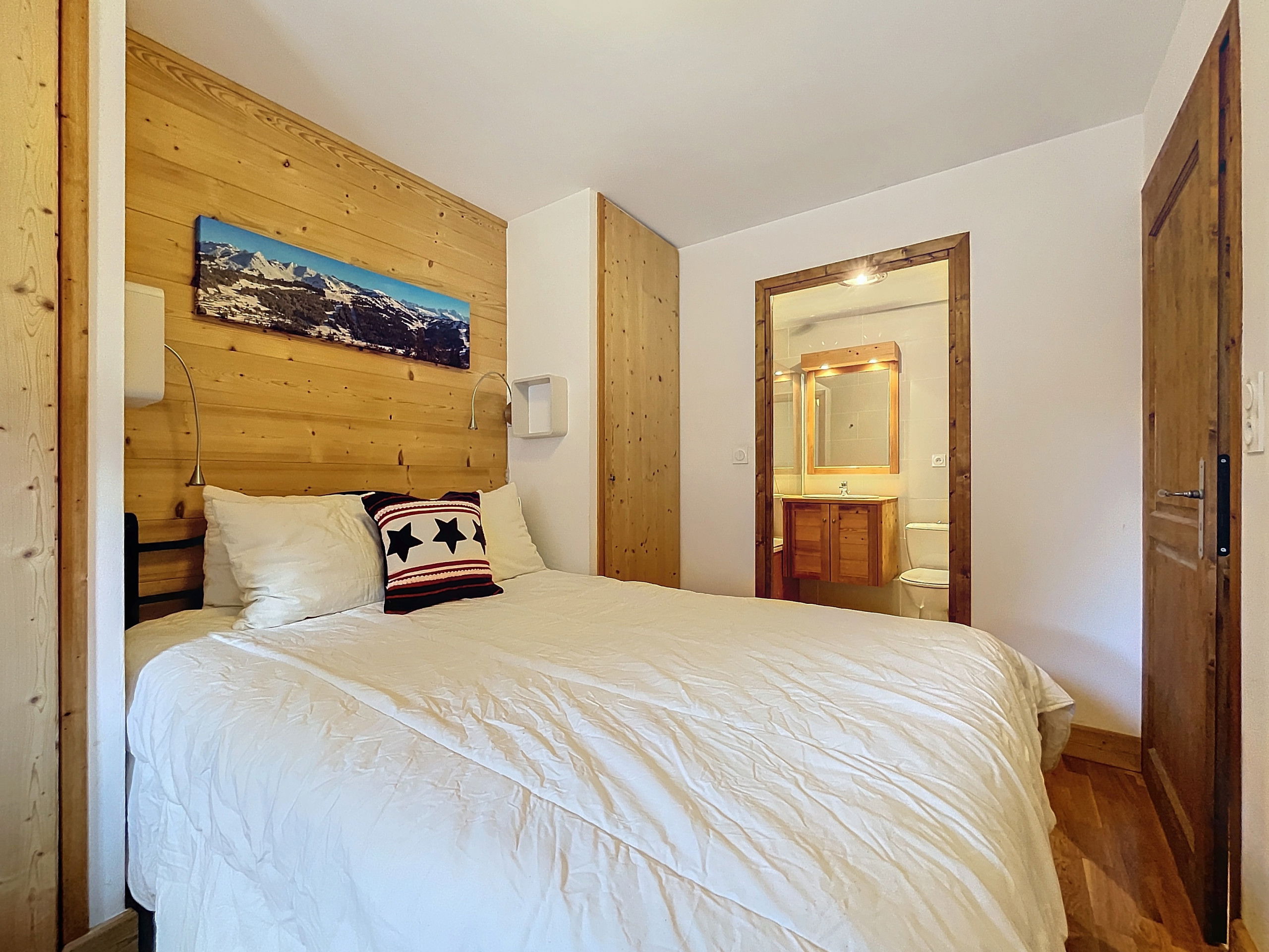 Chambre 1 : un lit double (140 cm) avec salle de bains privative et WC attenants.