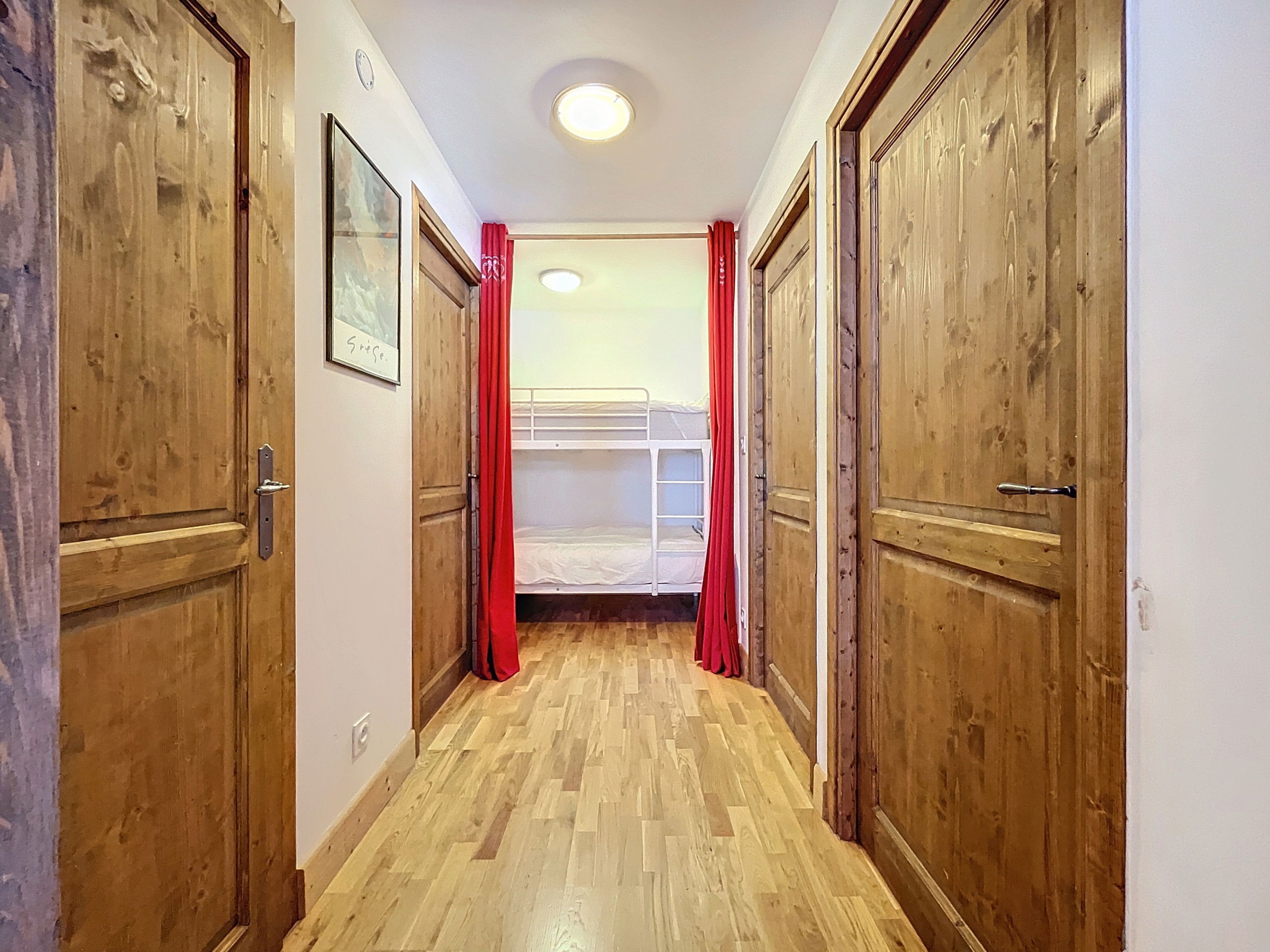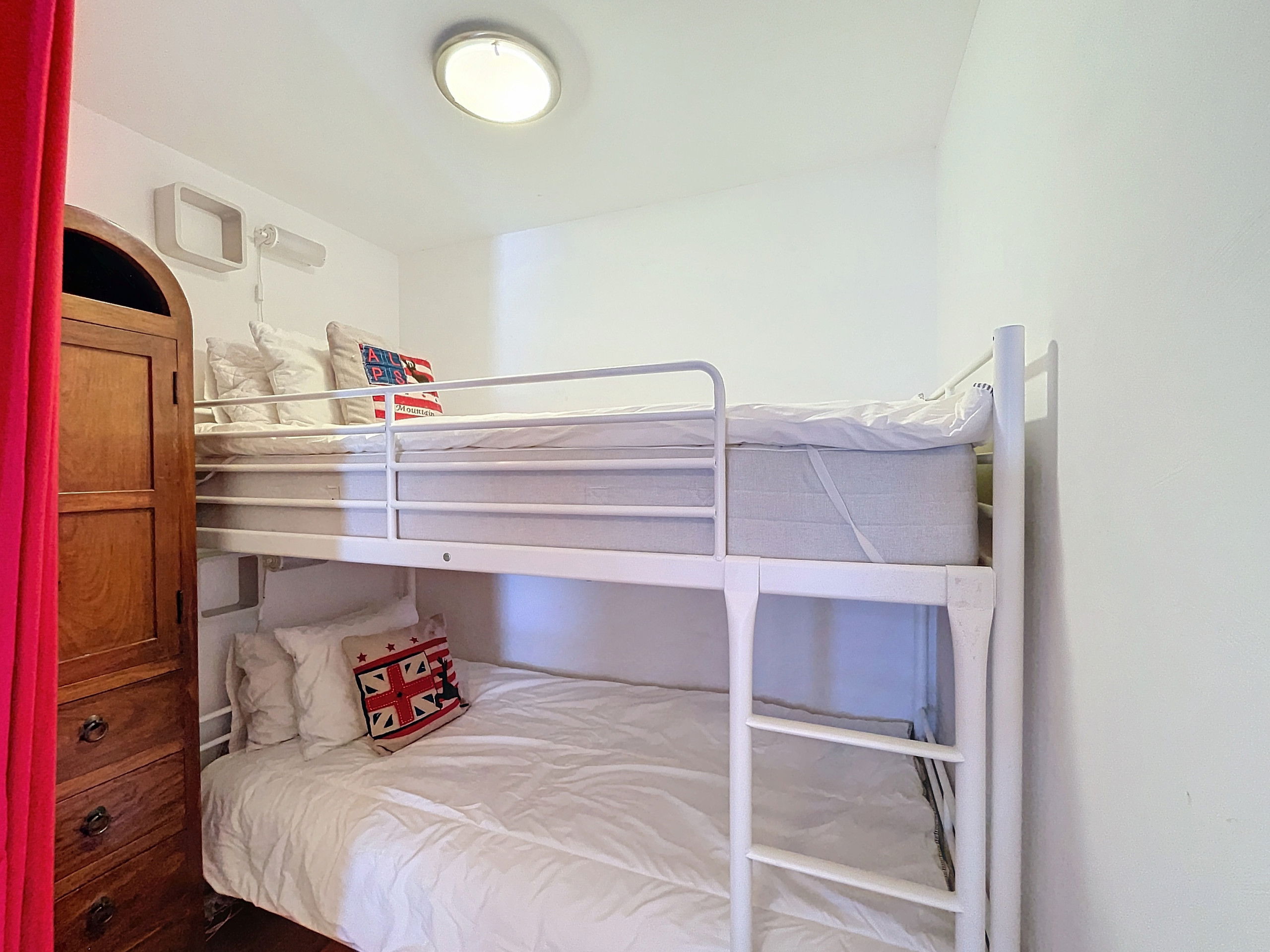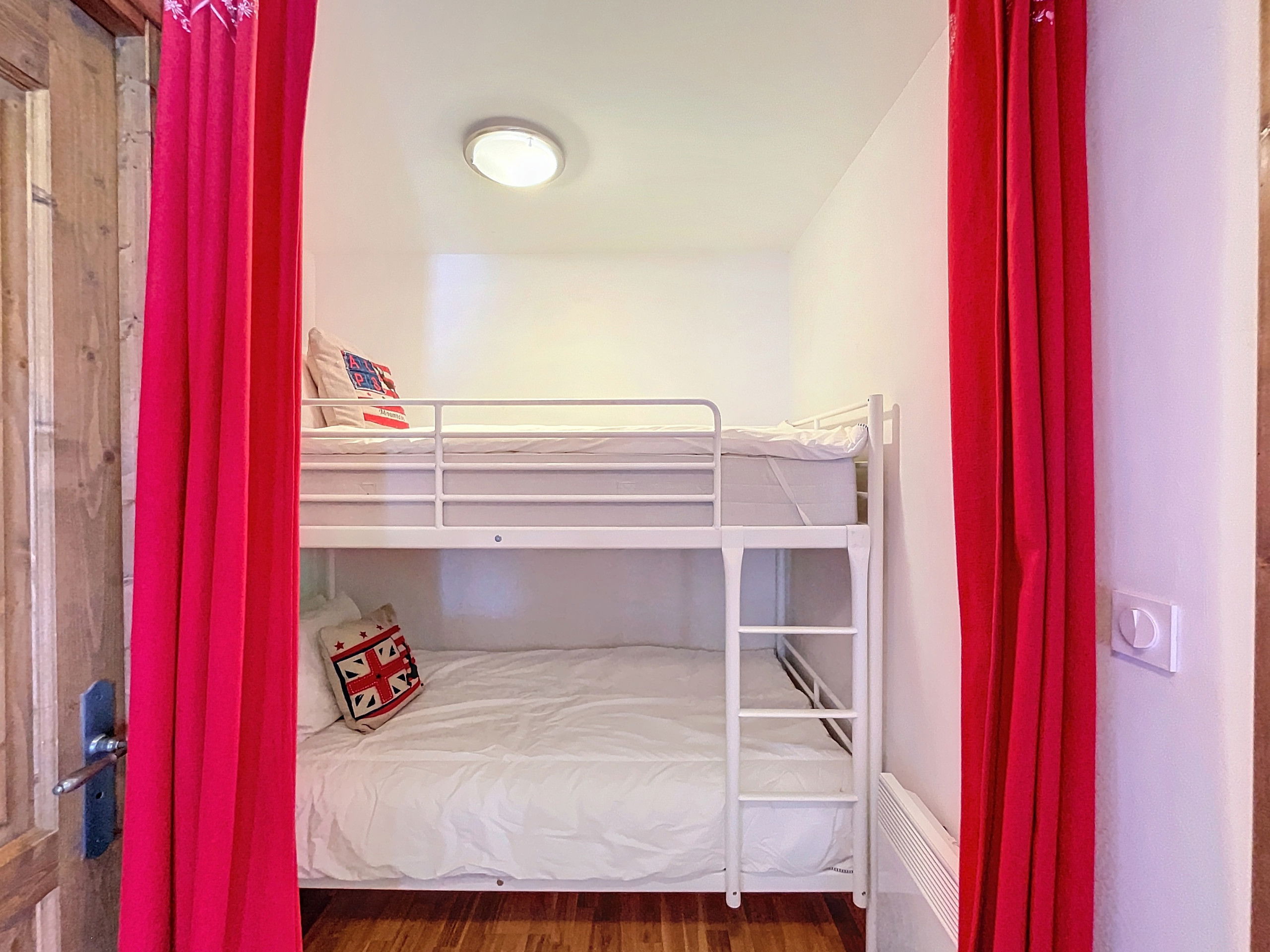 De plus, pour les familles ou les groupes, un coin montagne avec deux lits superposés et une séparation par rideau est disponible.