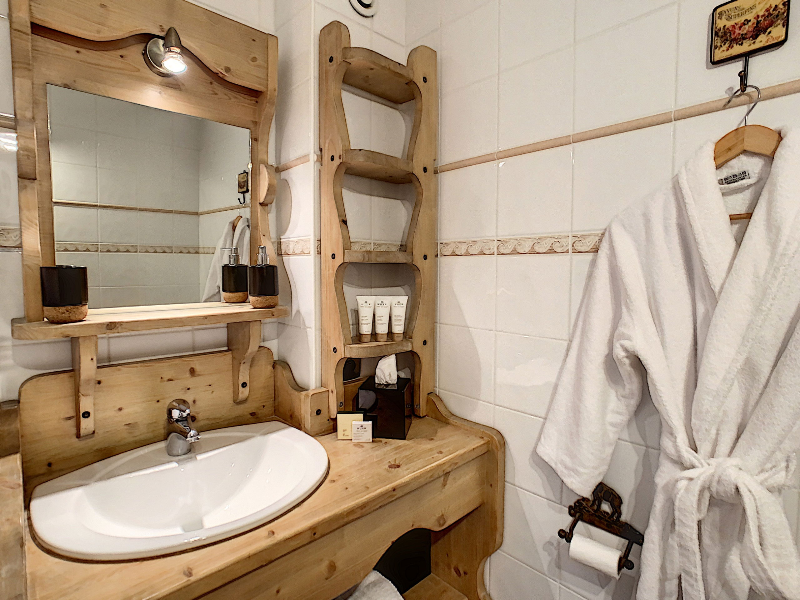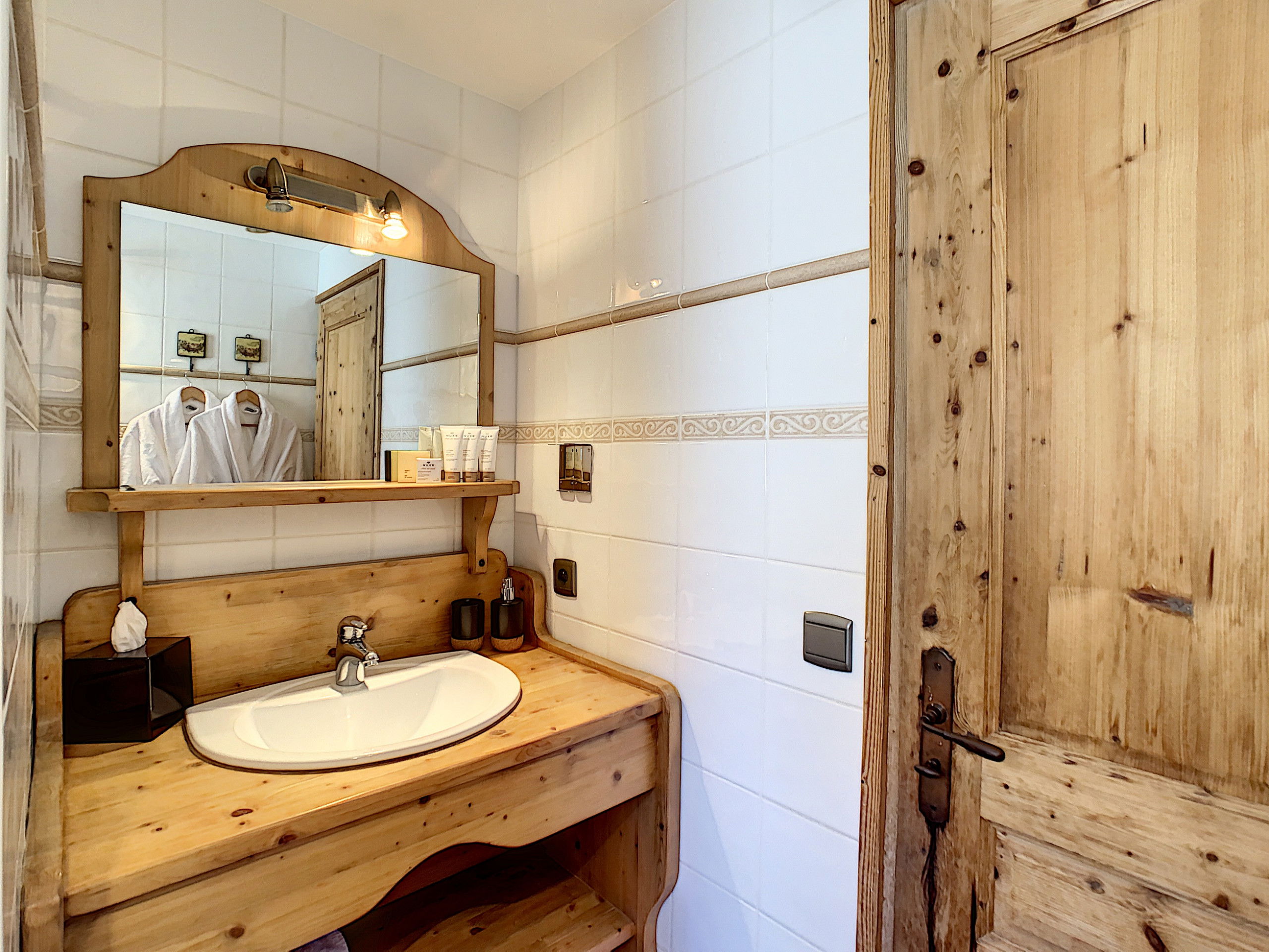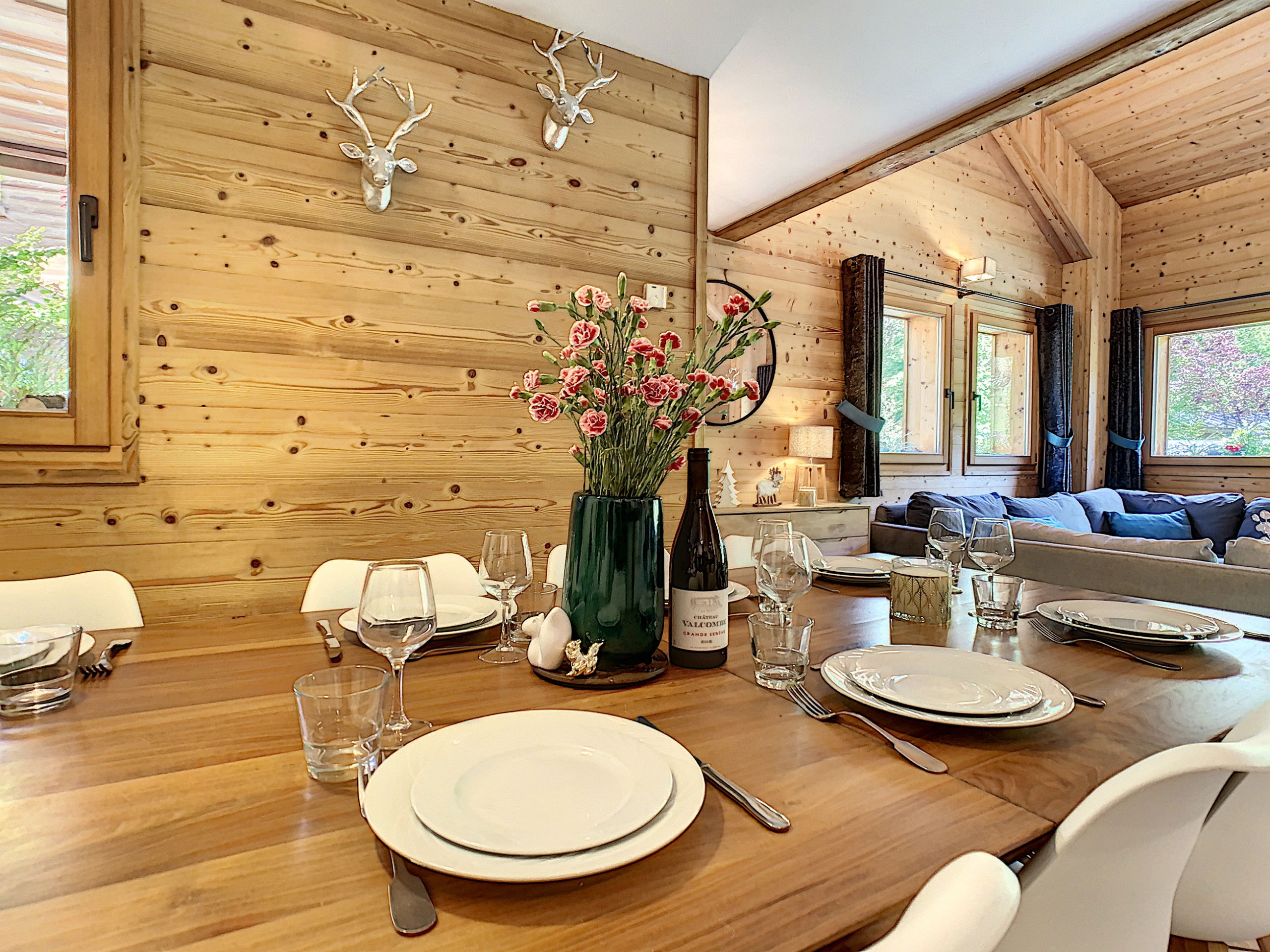 Dès votre arrivée, s'installe avec un grand séjour baigné de lumière, doté d'une télévision et d'un coin salon avec une cheminée accueillante. L'accès à la terrasse offre une vue imprenable sur les montagnes, créant le cadre parfait pour des moments conviviaux.