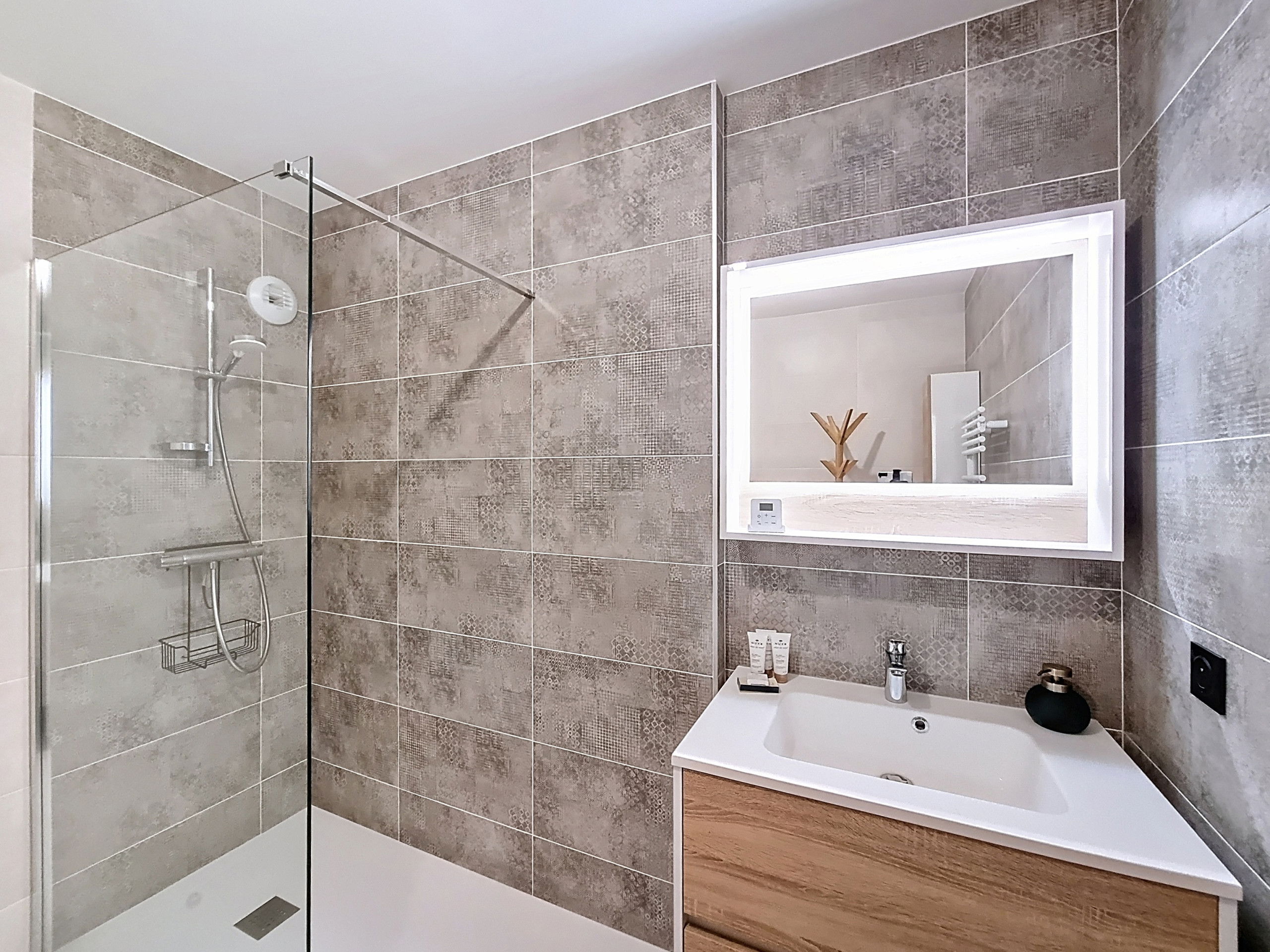 La salle de bain avec douche spacieuse offre tout le confort nécessaire. Une connexion WiFi est disponible pour rester connecté, et un téléviseur vous permettra de vous détendre après une journée en montagne.