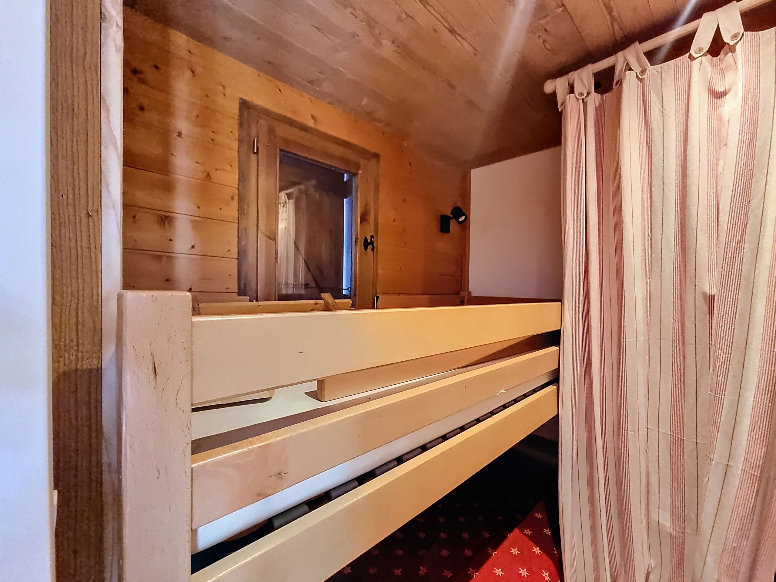 L'appartement dispose de deux chambres dont une cabine : une chambre avec un lit double 160 x 200 et une autre avec 2 lits superposés. La salle de bain avec baignoire permet de se détendre après une journée remplie d'aventures en montagne.
