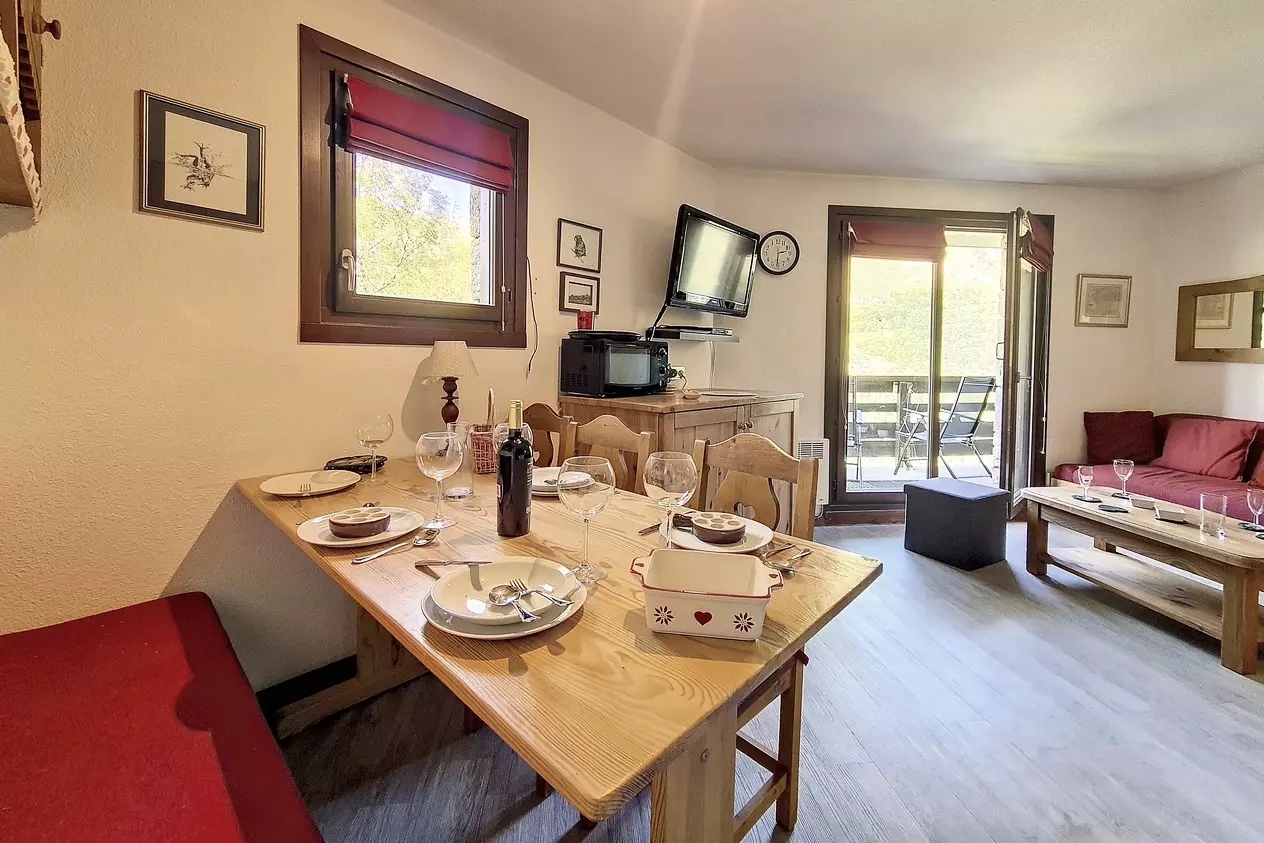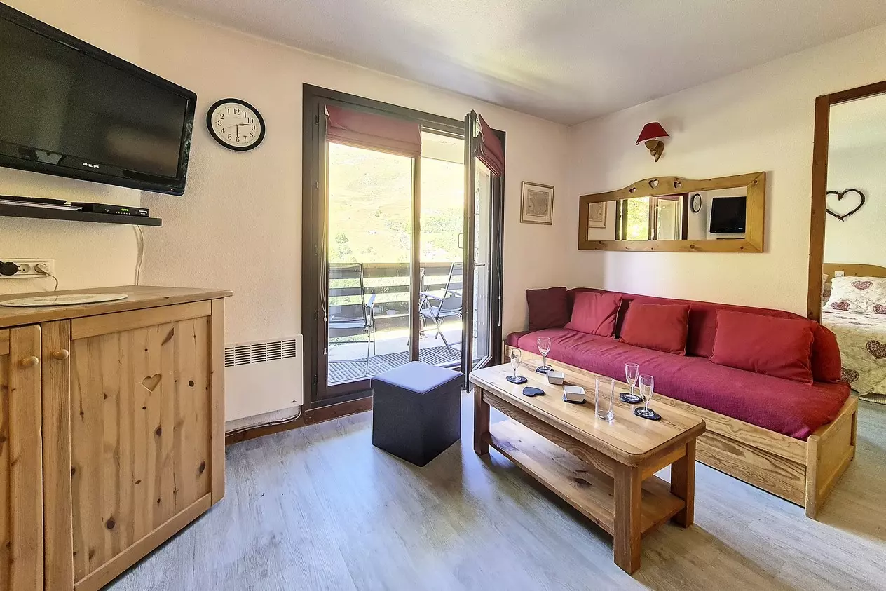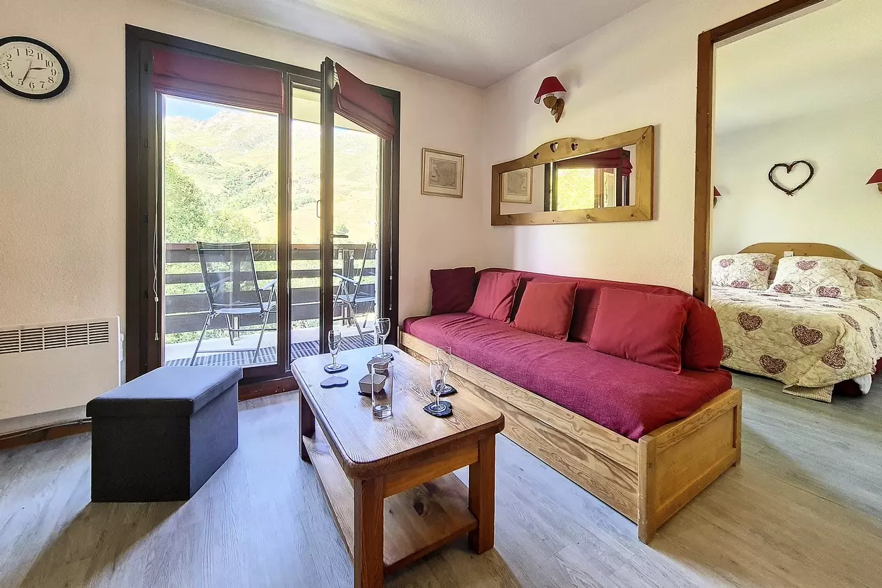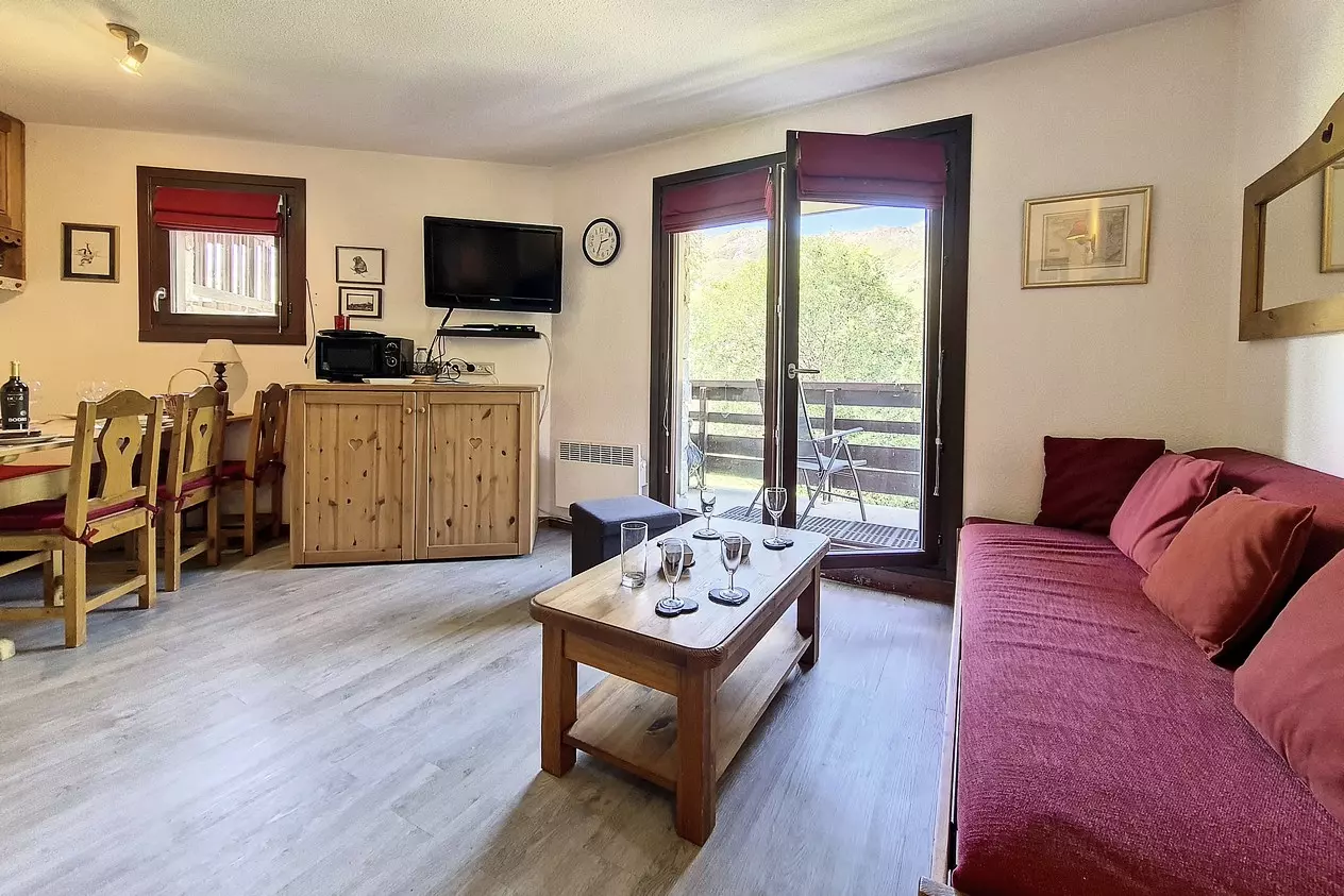 Agréable appartement de deux pieces avec cabine de 39 m² pour 6 personnes. Il est situé en Rez de Chaussée et possède un balcon orienté Sud.