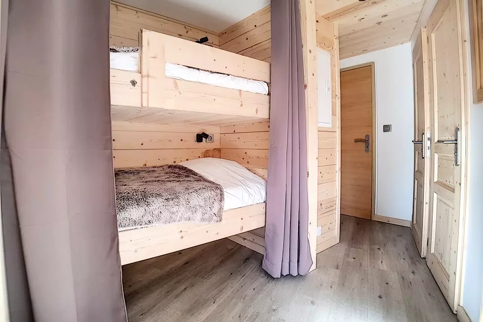 Coin montagne (séparé du séjour par un rideau) : 2 lits superposés 1 personne.