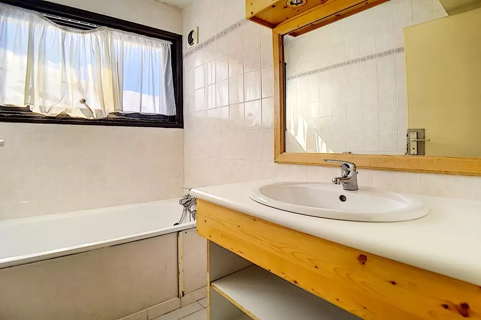 Salle de bains avec baignoire.